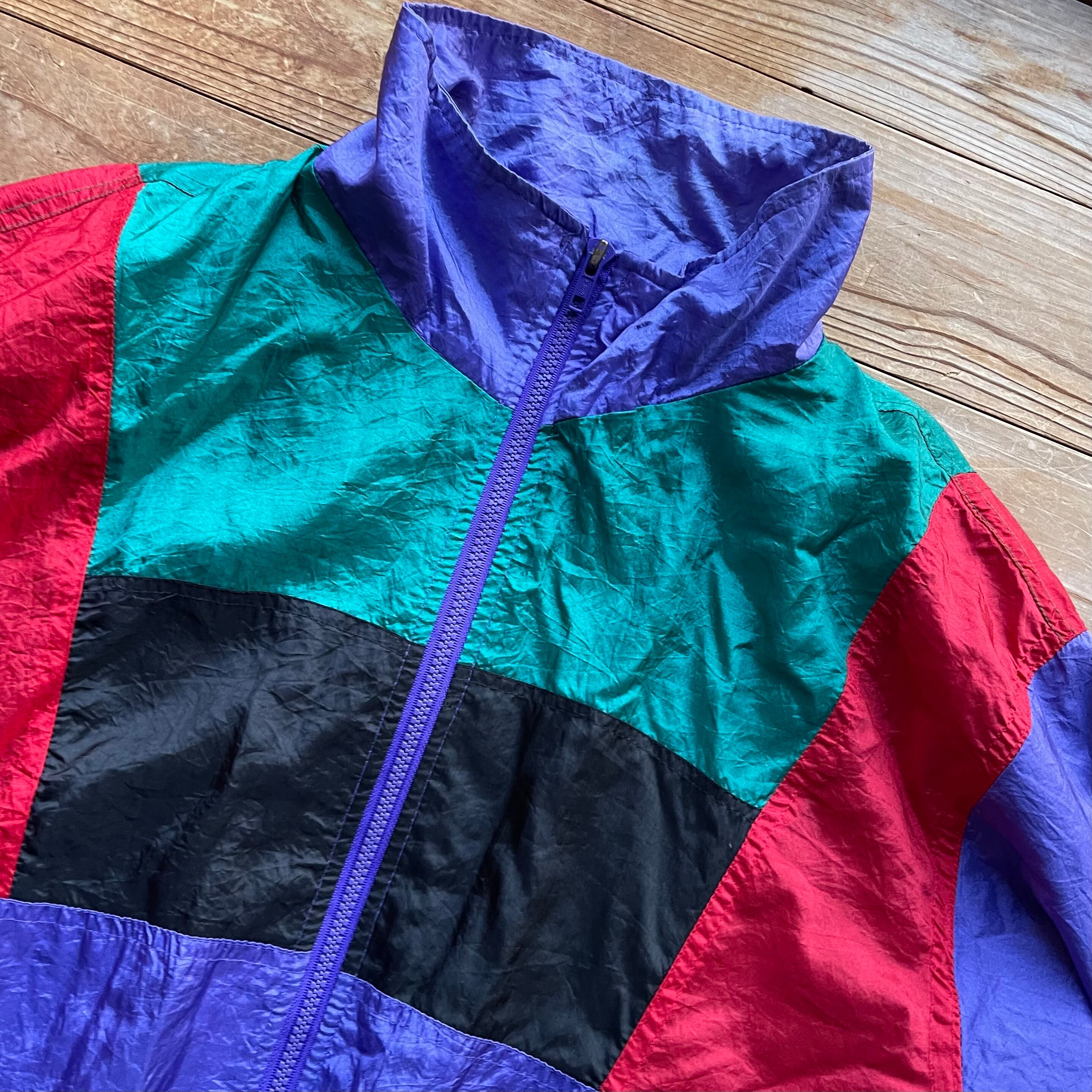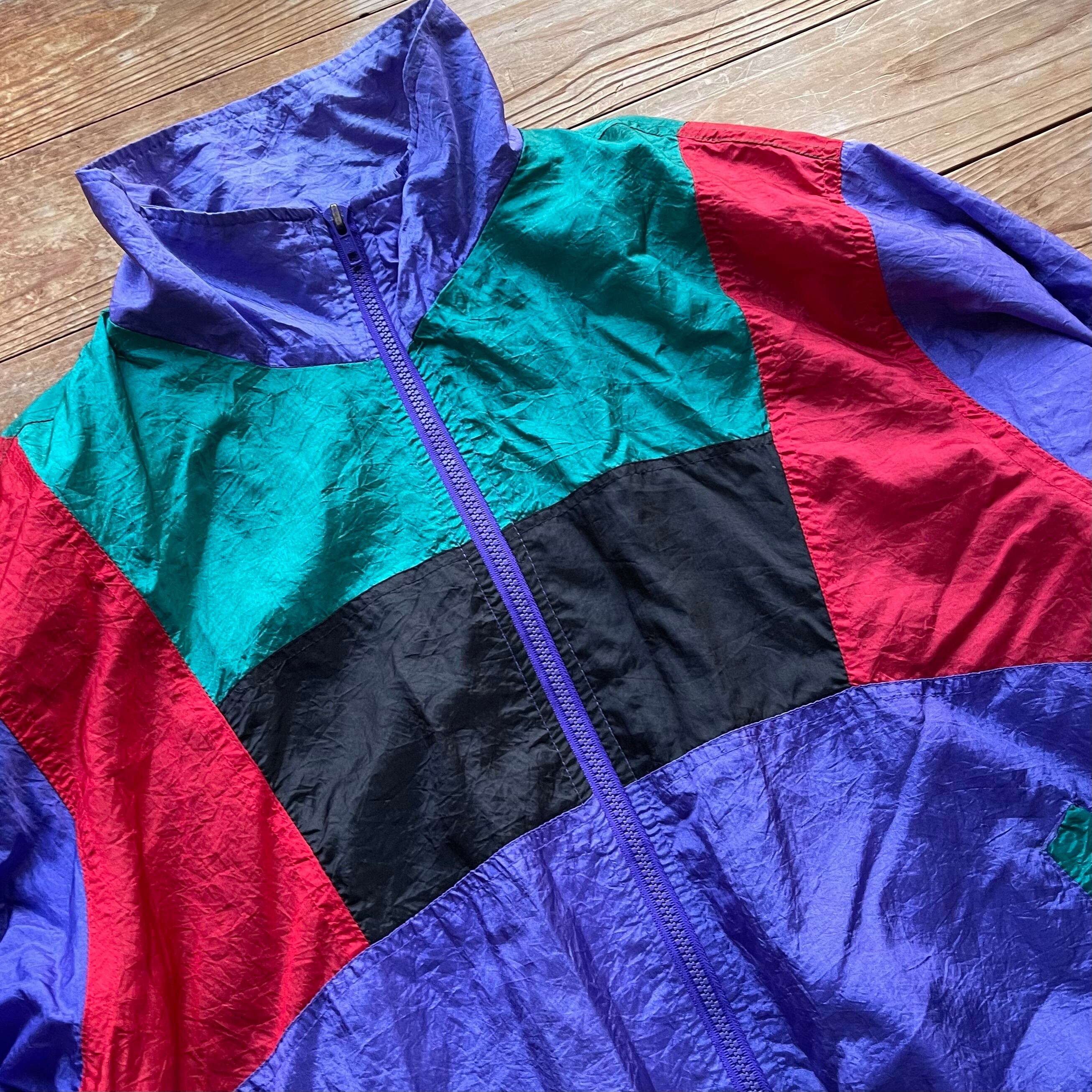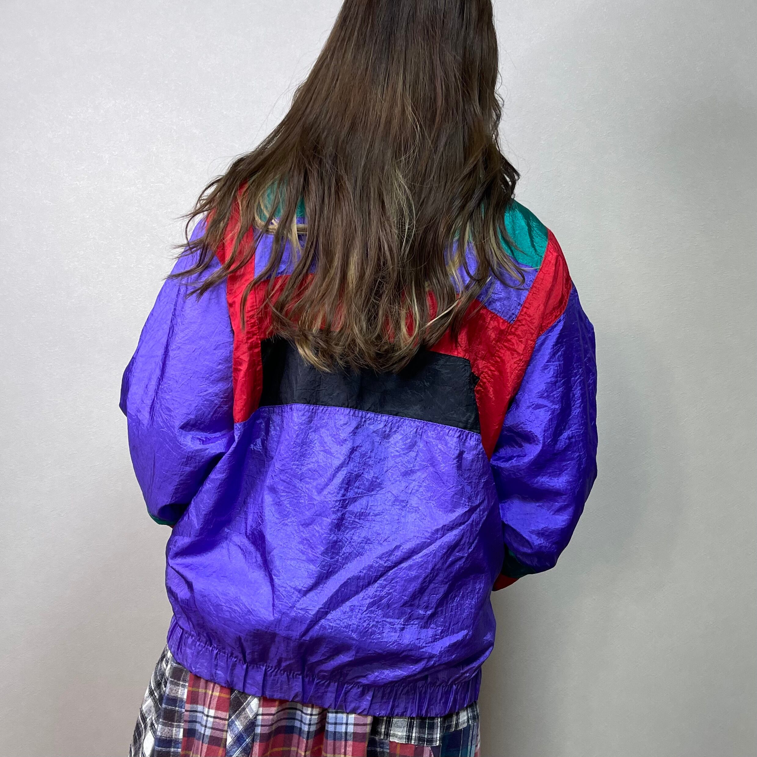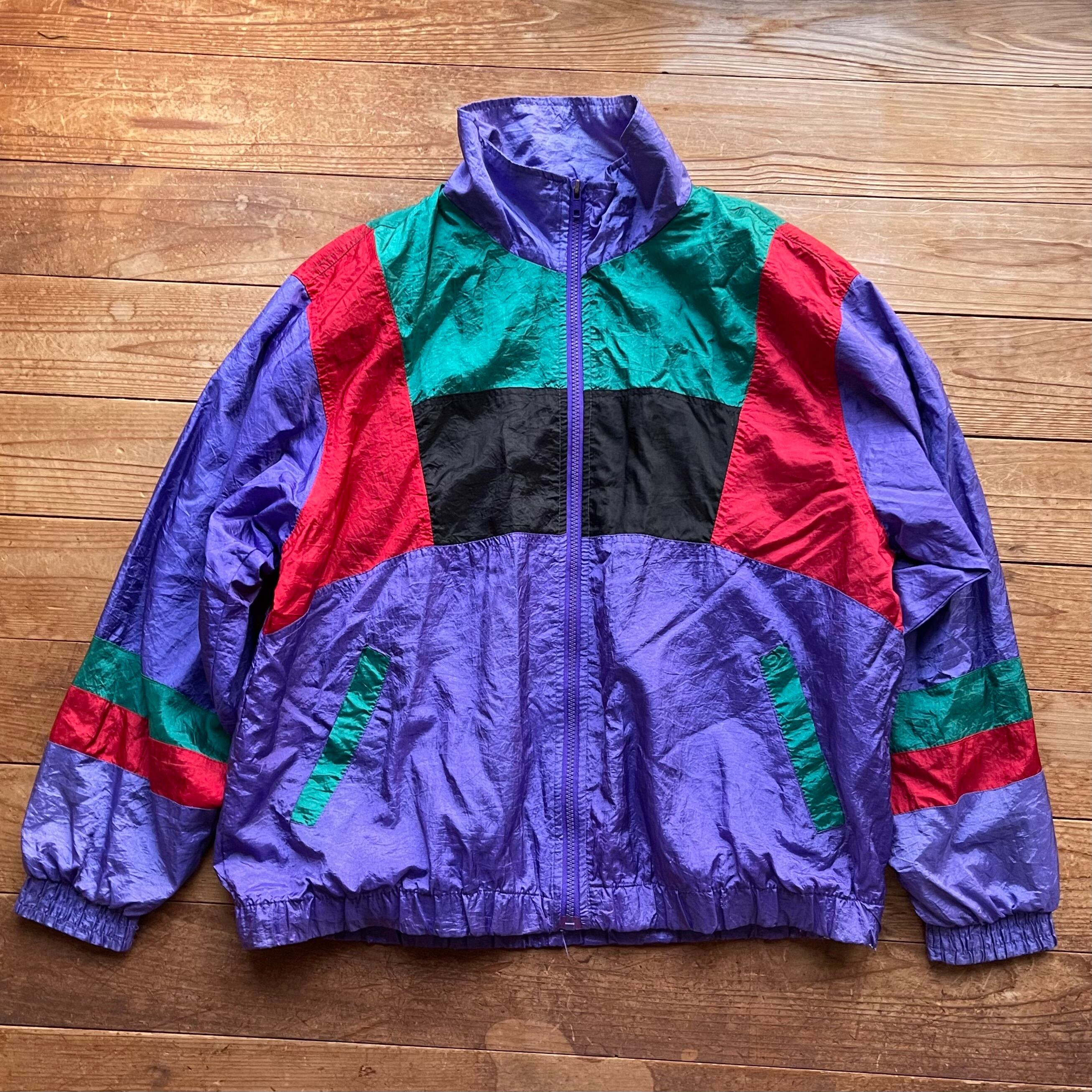 80's PANASIA switching nylon jacket. 古着 ナイロンジャケット 切り替えデザイン パープル グリーン レッド レディース メンズ