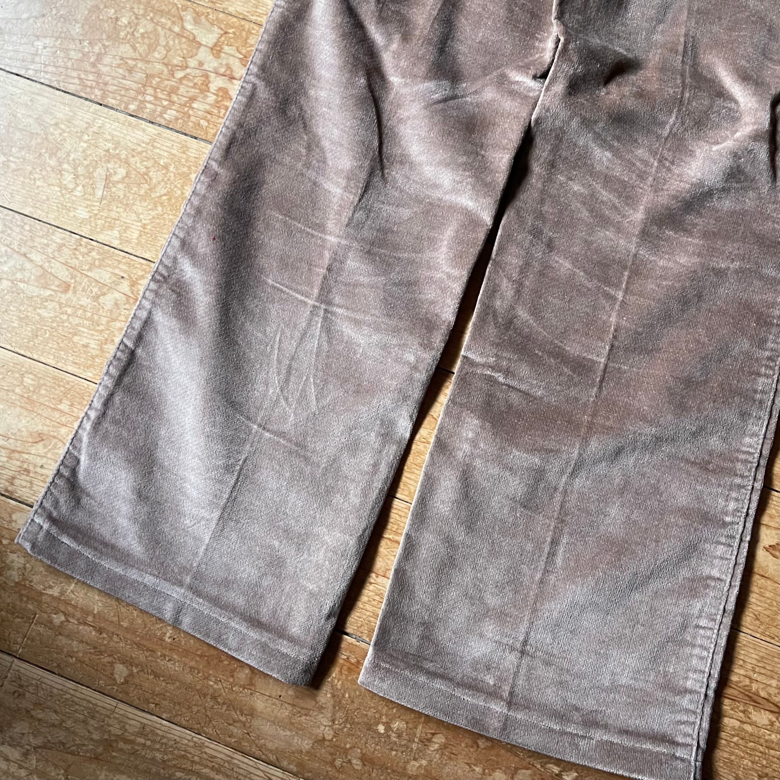 ベージュカラーのベロアパンツ。