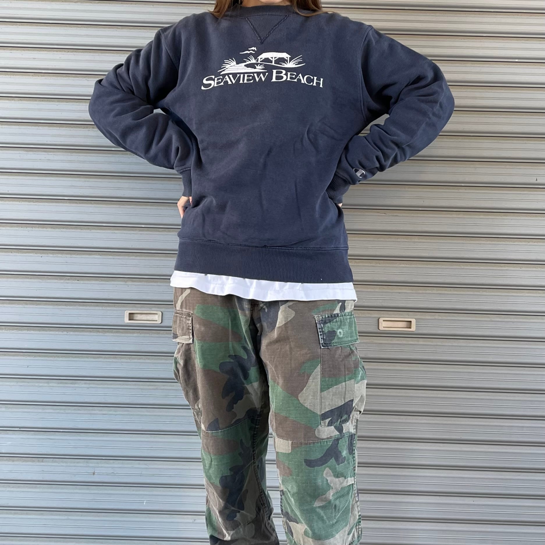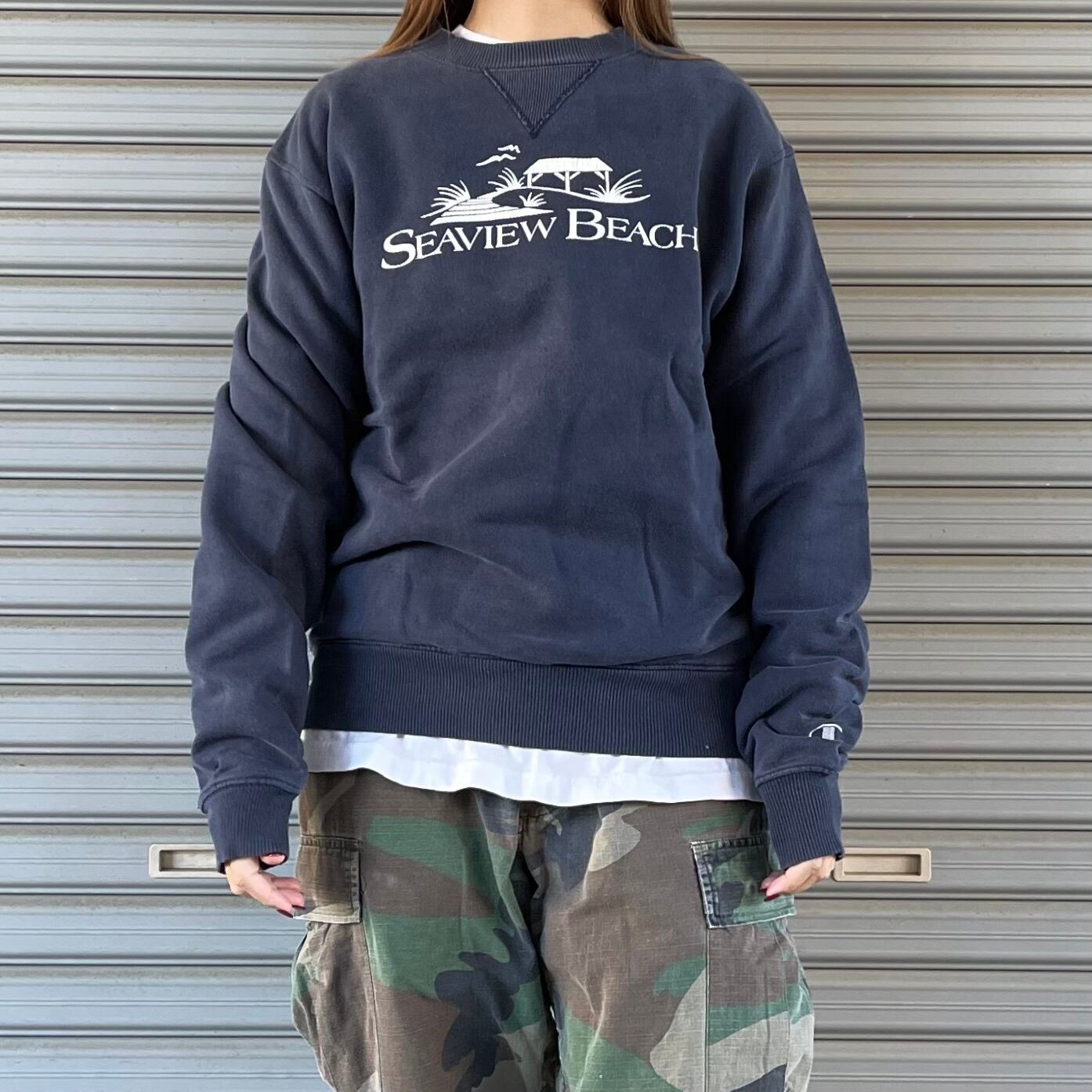 00's Champion Seaview Beach sweat. 古着 チャンピオン プリントスウェット ネイビー 紺 M