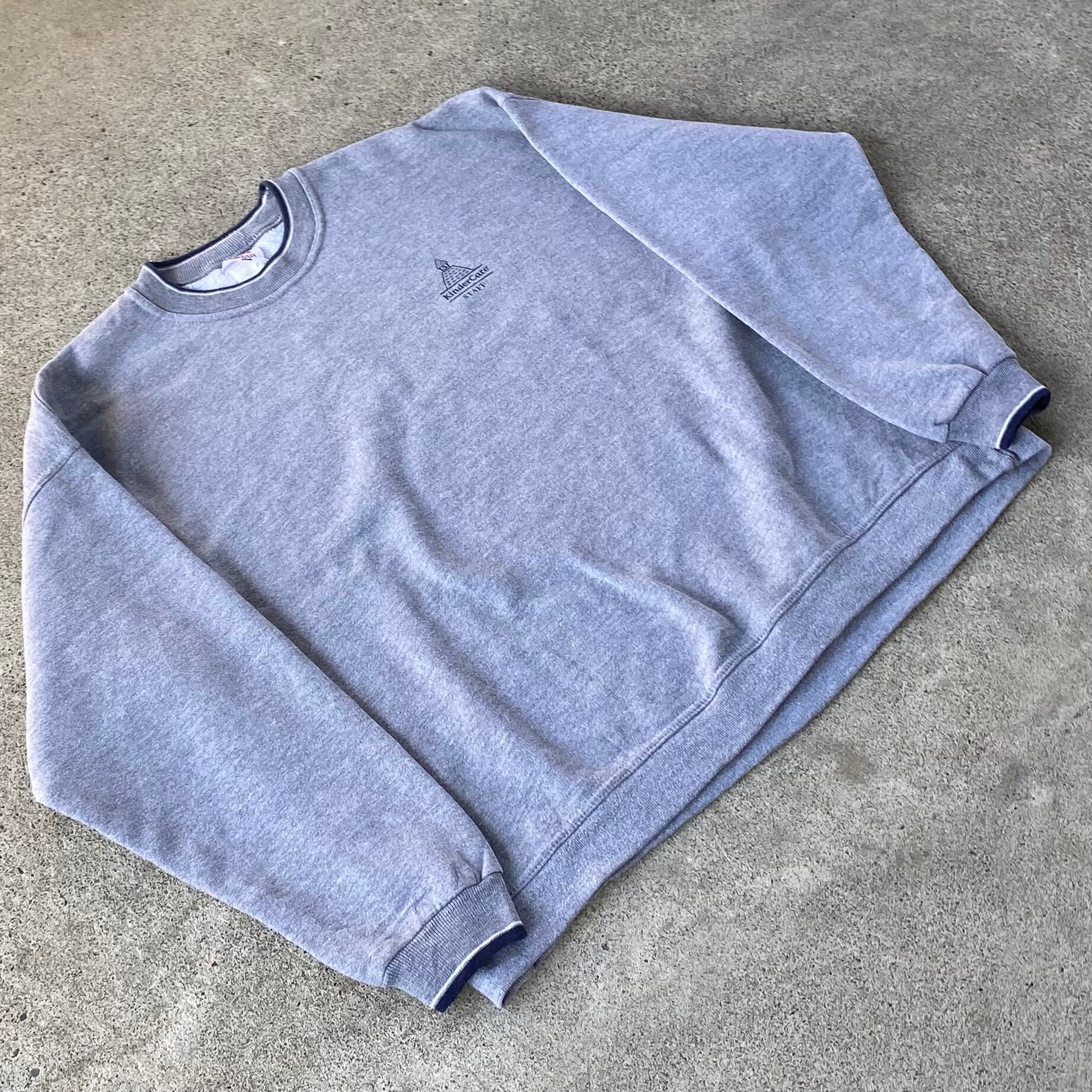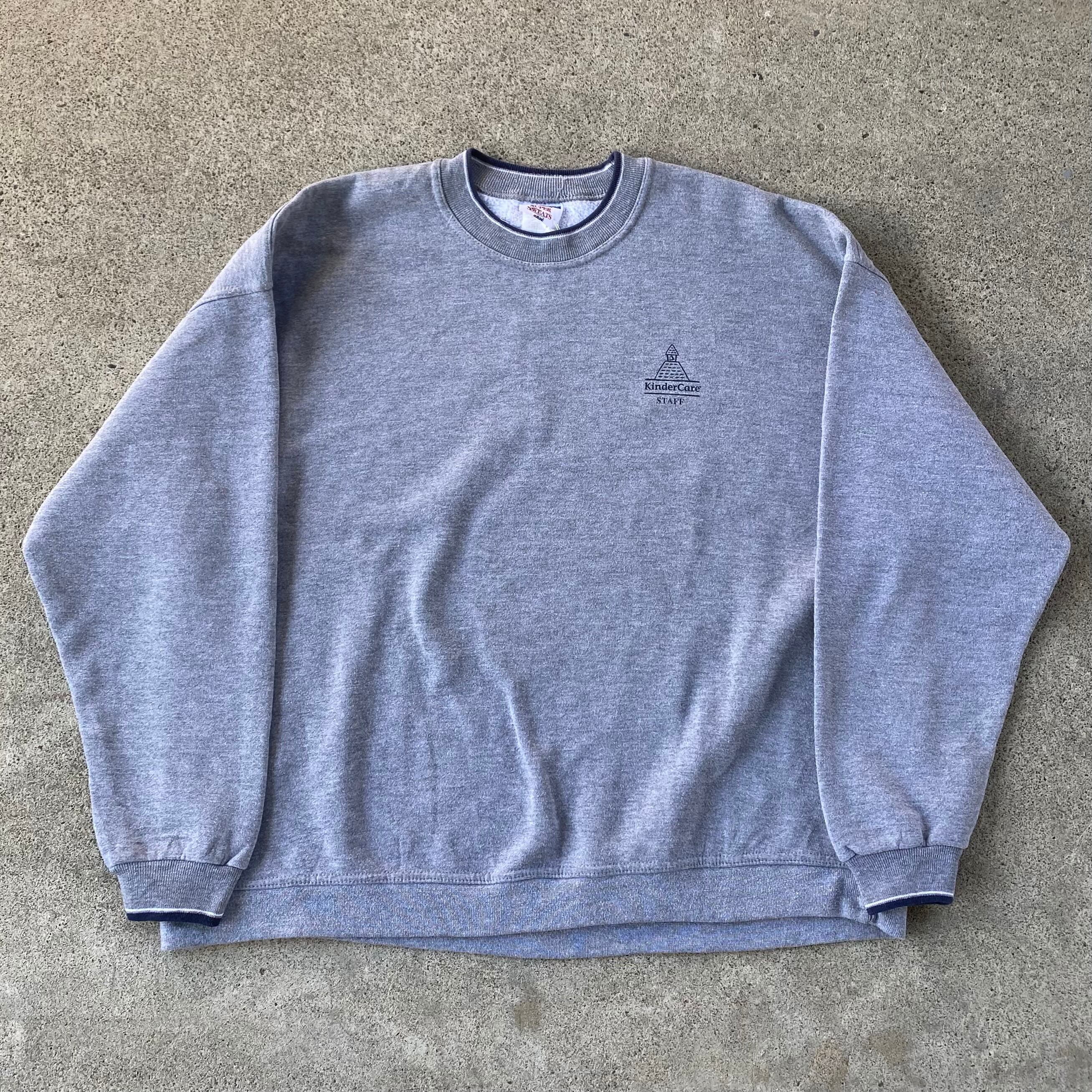 90's USA製 JERZEES Kinder Care logo sweat. 古着 ジャージーズ リブデザインスウェット グレー XL