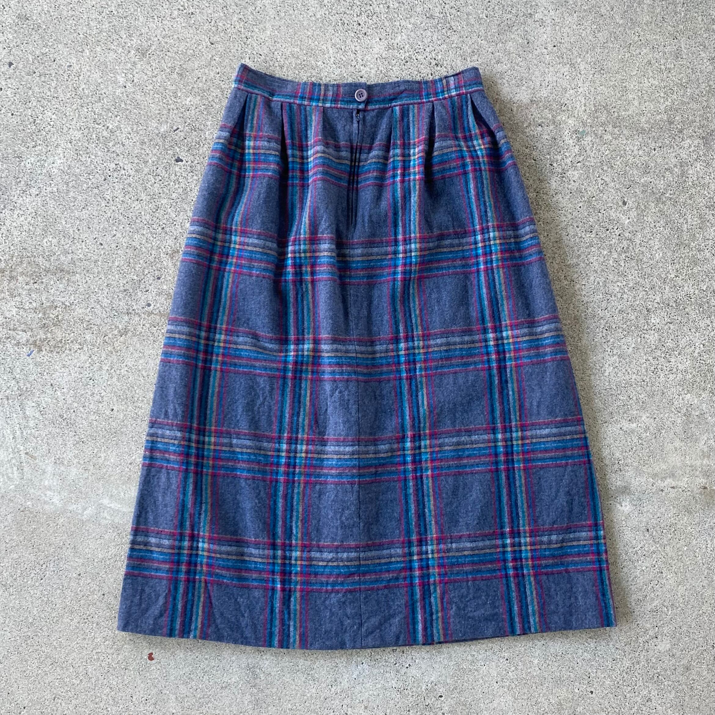 70's USA製 PENDLETON ウールチェックスカート レディース 古着 ペンドルトン vintage スチールブルー