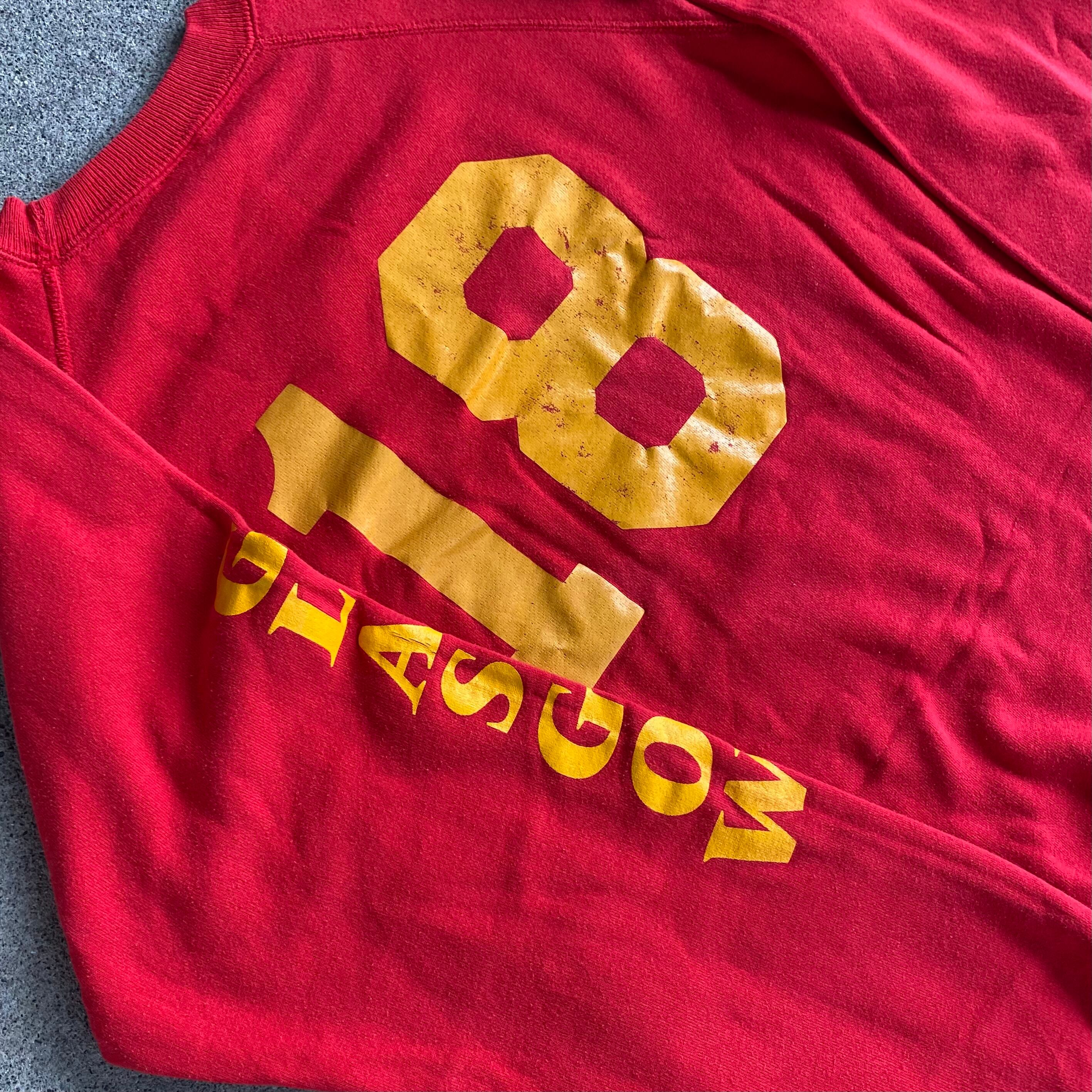 90's Hanes ナンバリングスウェット USA製 古着 トレーナー Glasgow サッカー グラスゴー レッド 赤