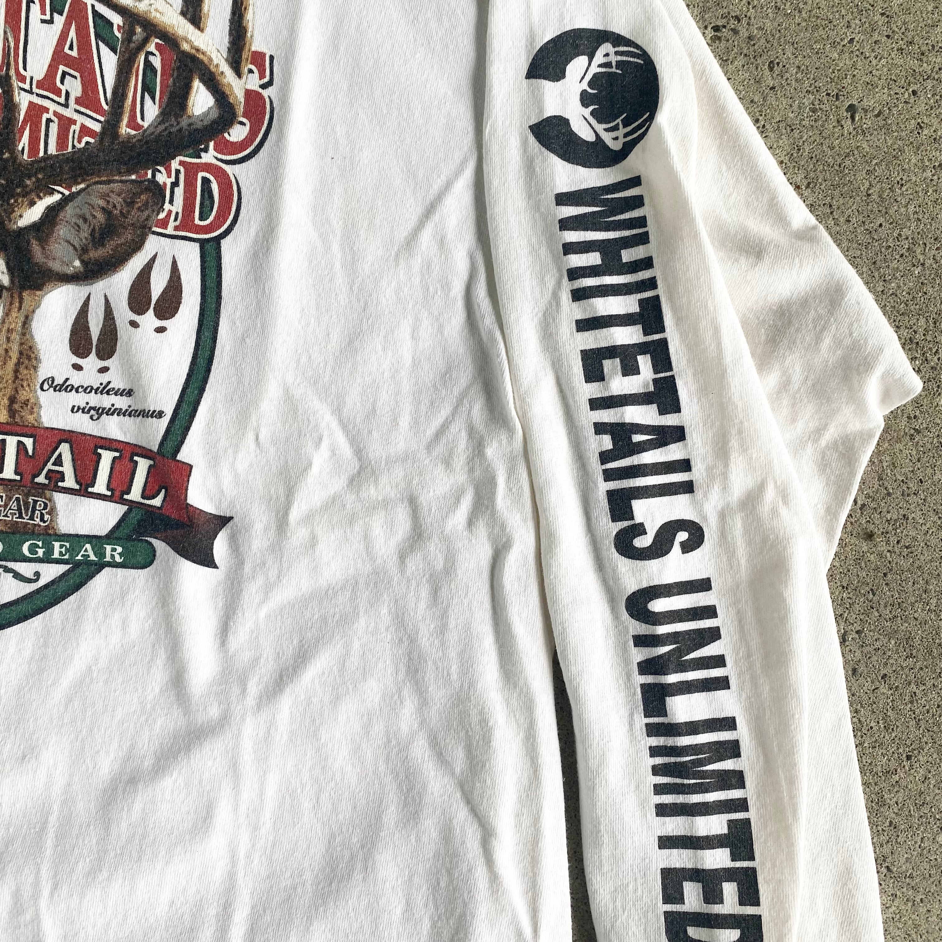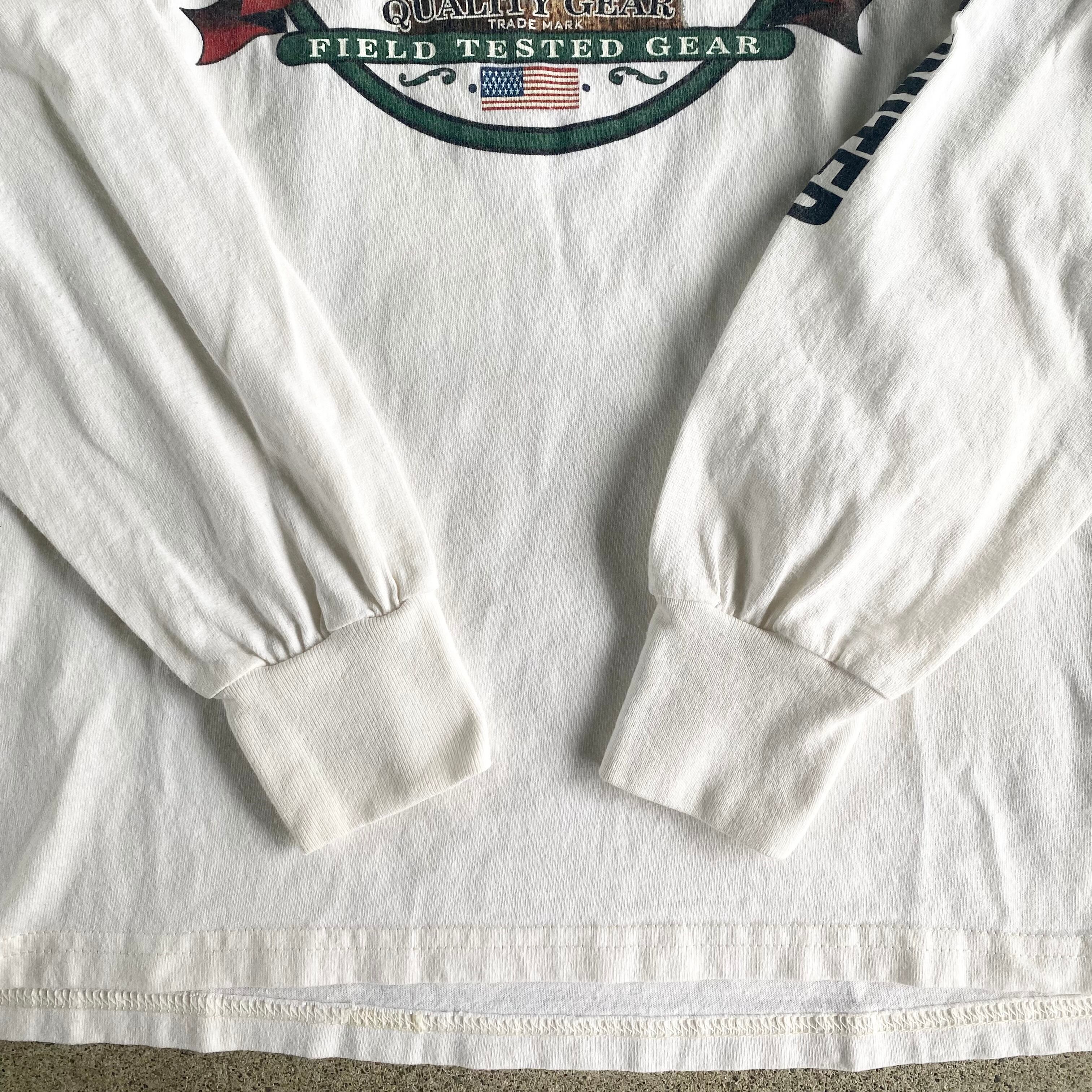 90's アニマル袖プリントロンT ホワイト 鹿 白 長袖Tシャツ 古着