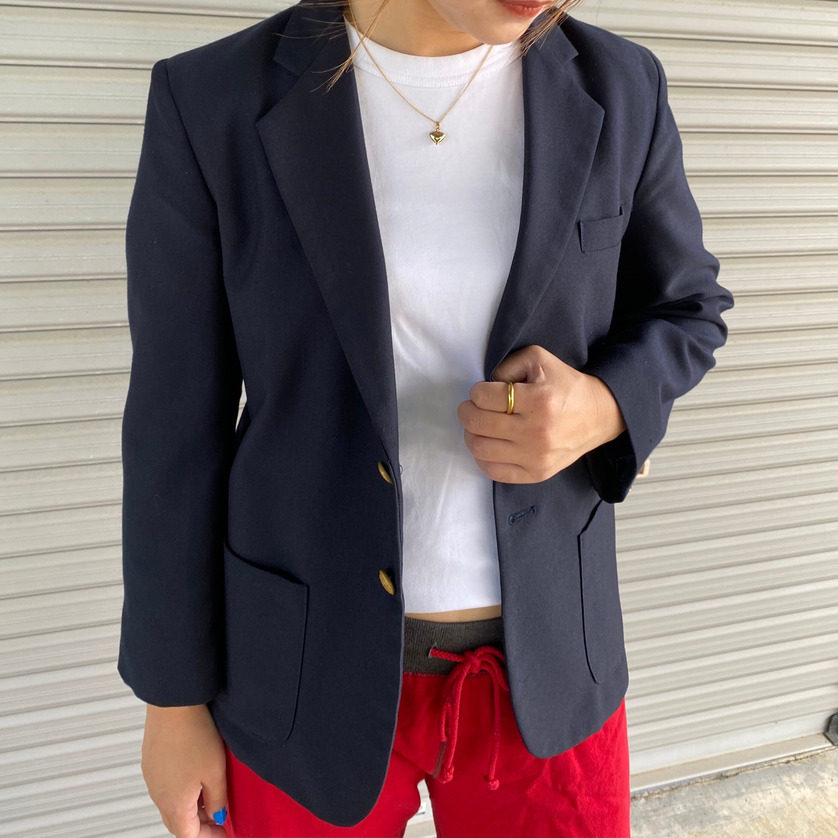 80's VAN HEUSEN ネイビーブレザー 金ボタン 紺ブレ レディース 古着