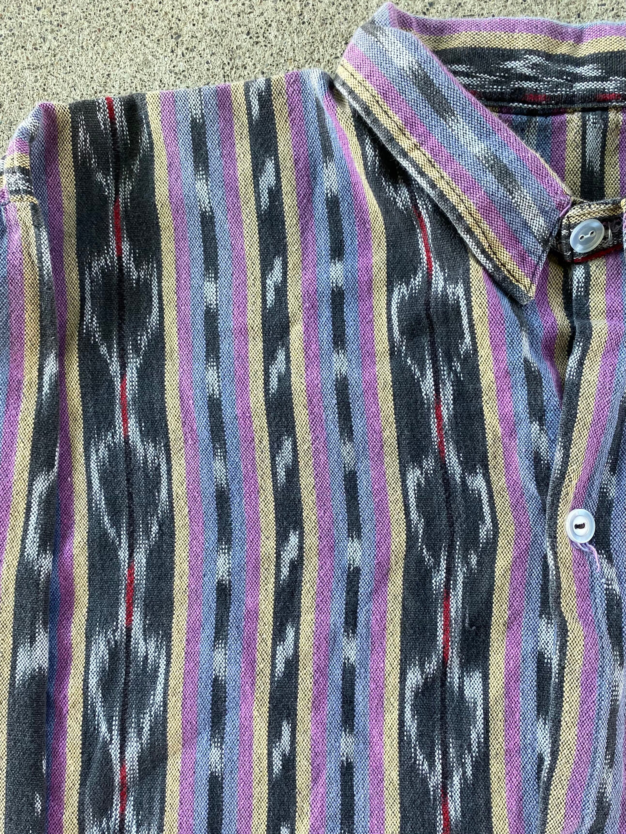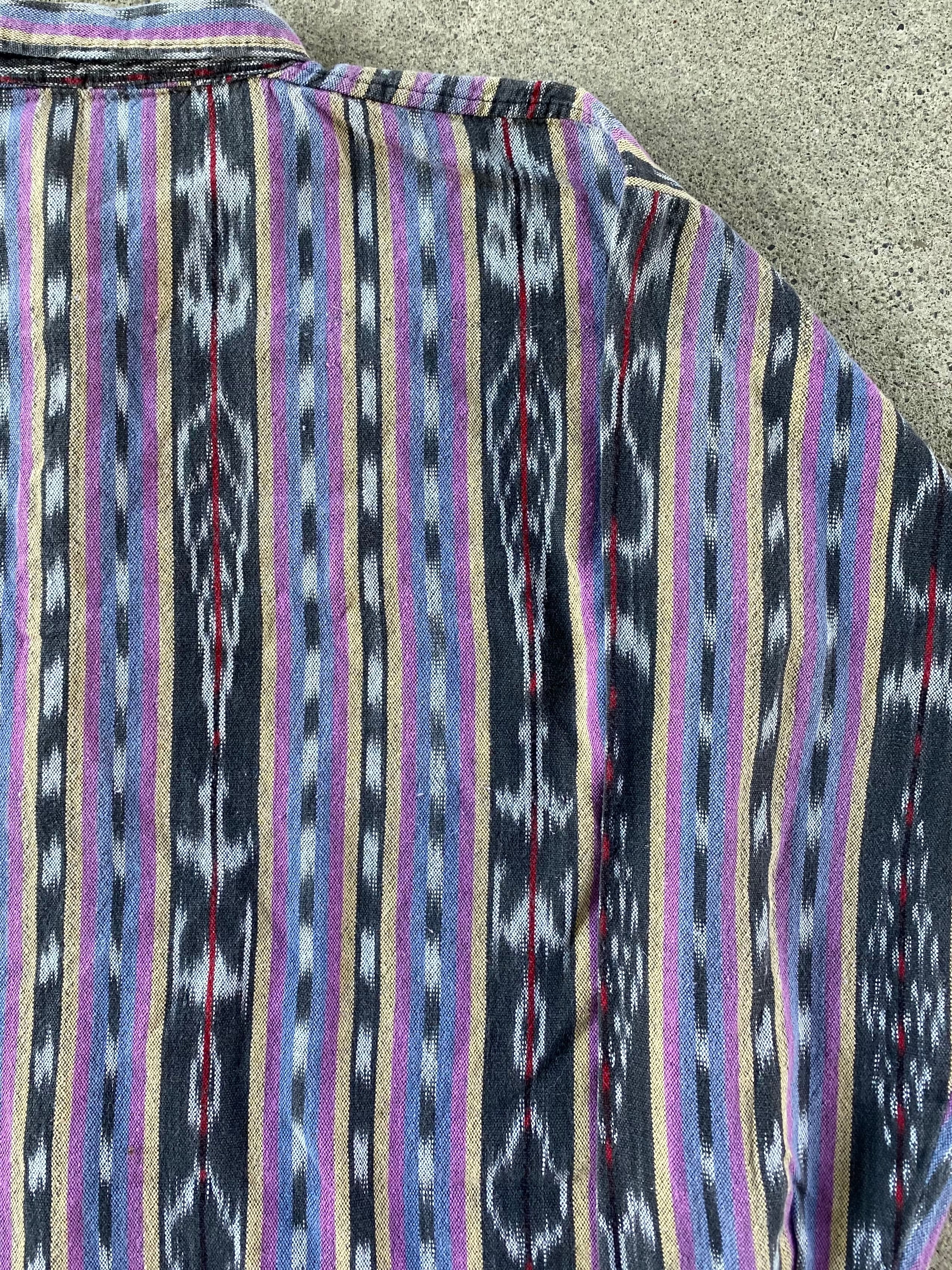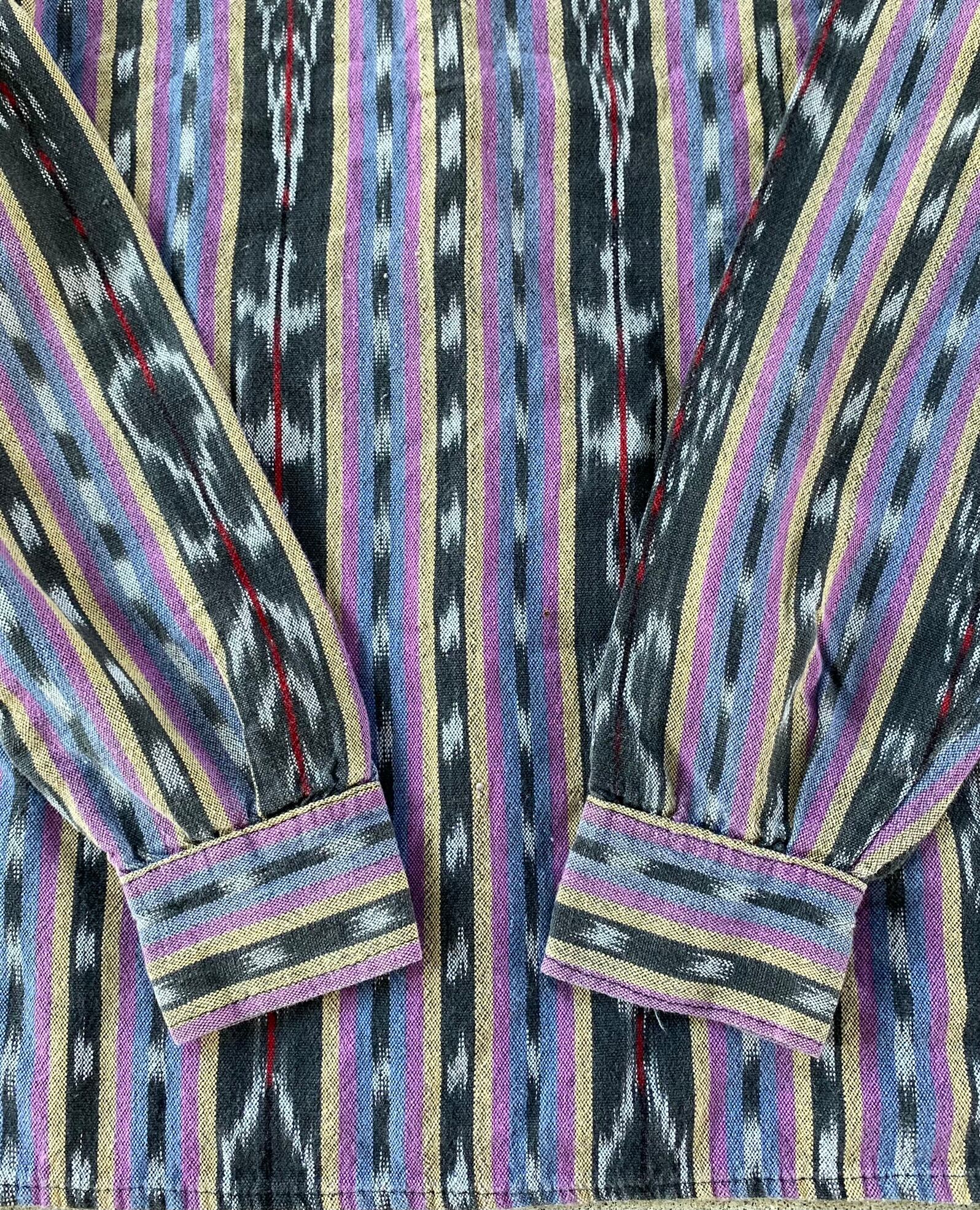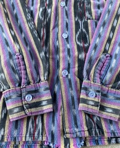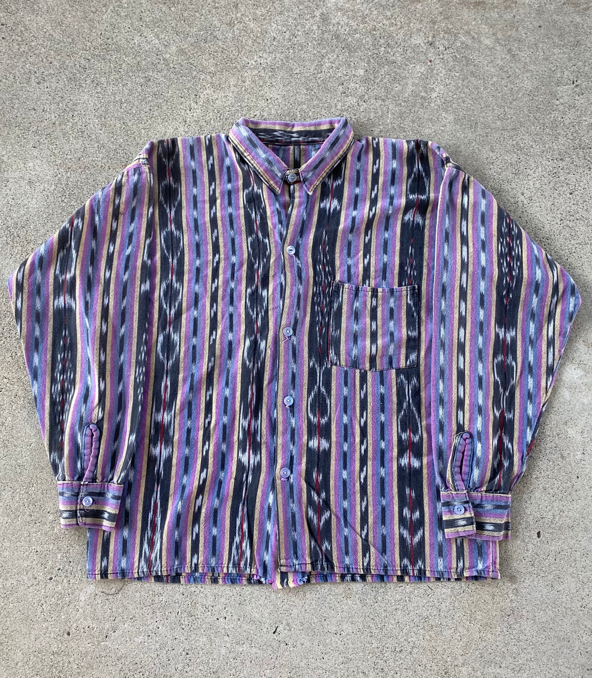 【80's】ネイティヴストライプシャツ ストライプ パープル ブラック 古着 長袖
