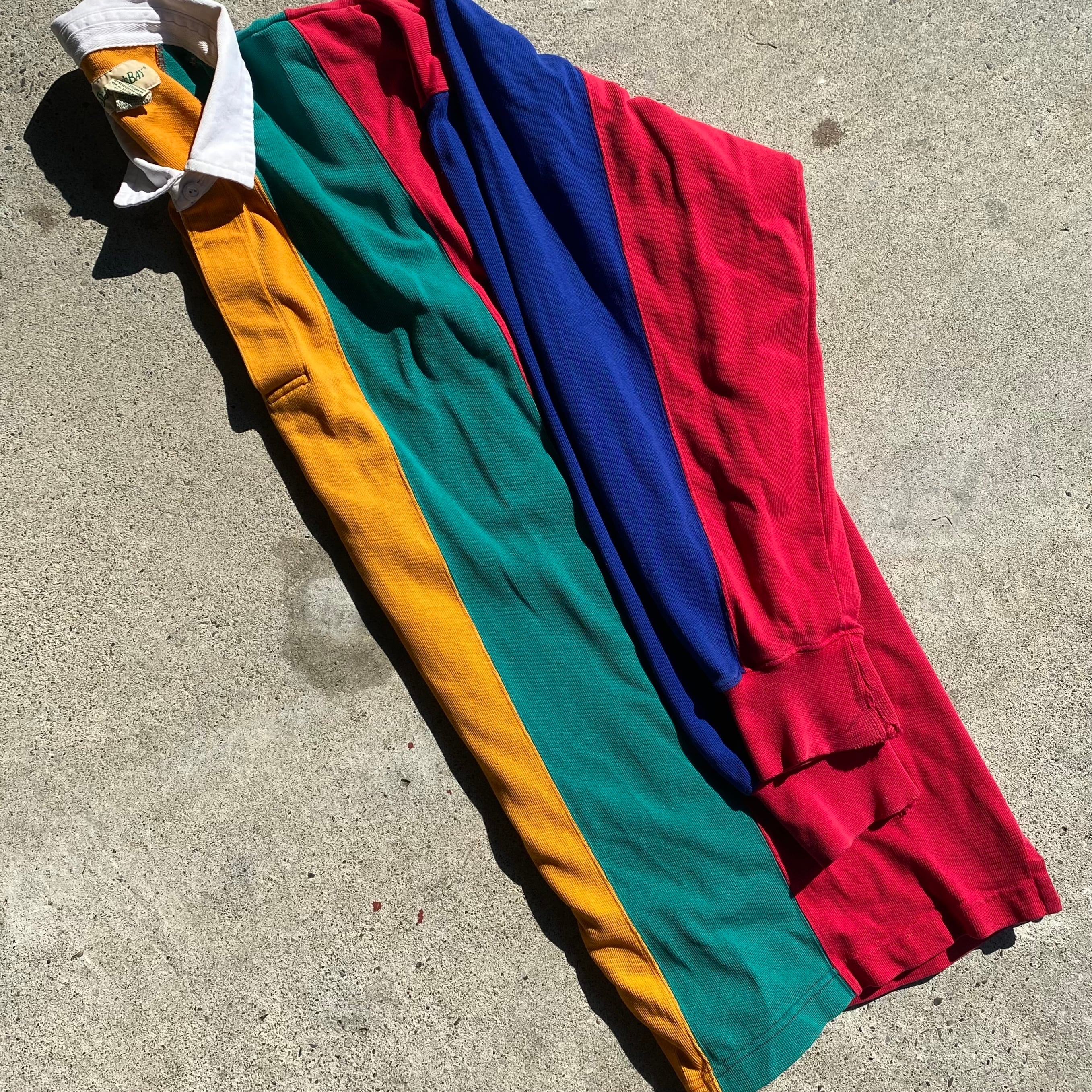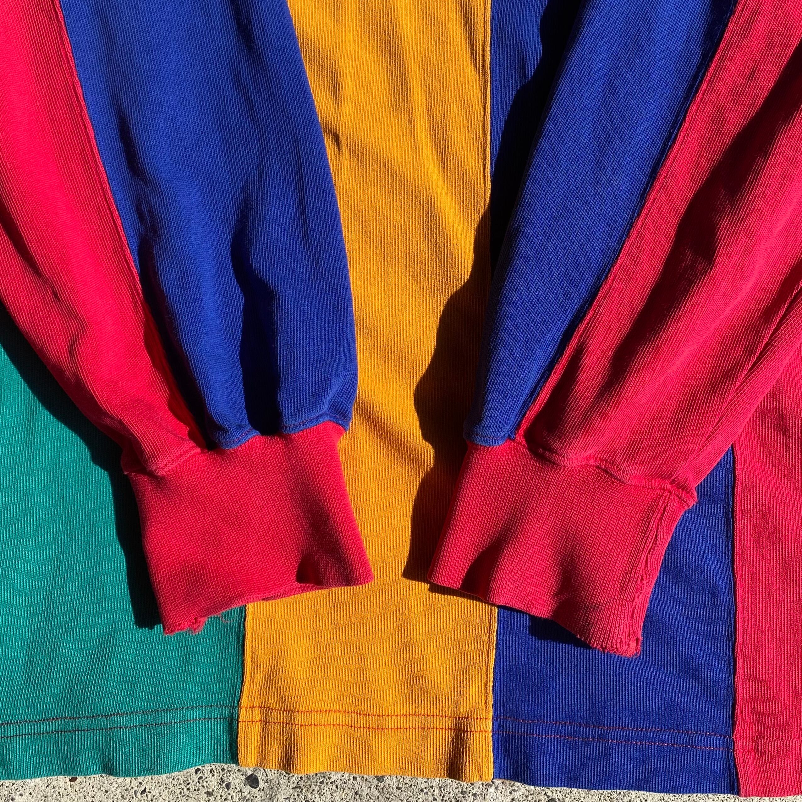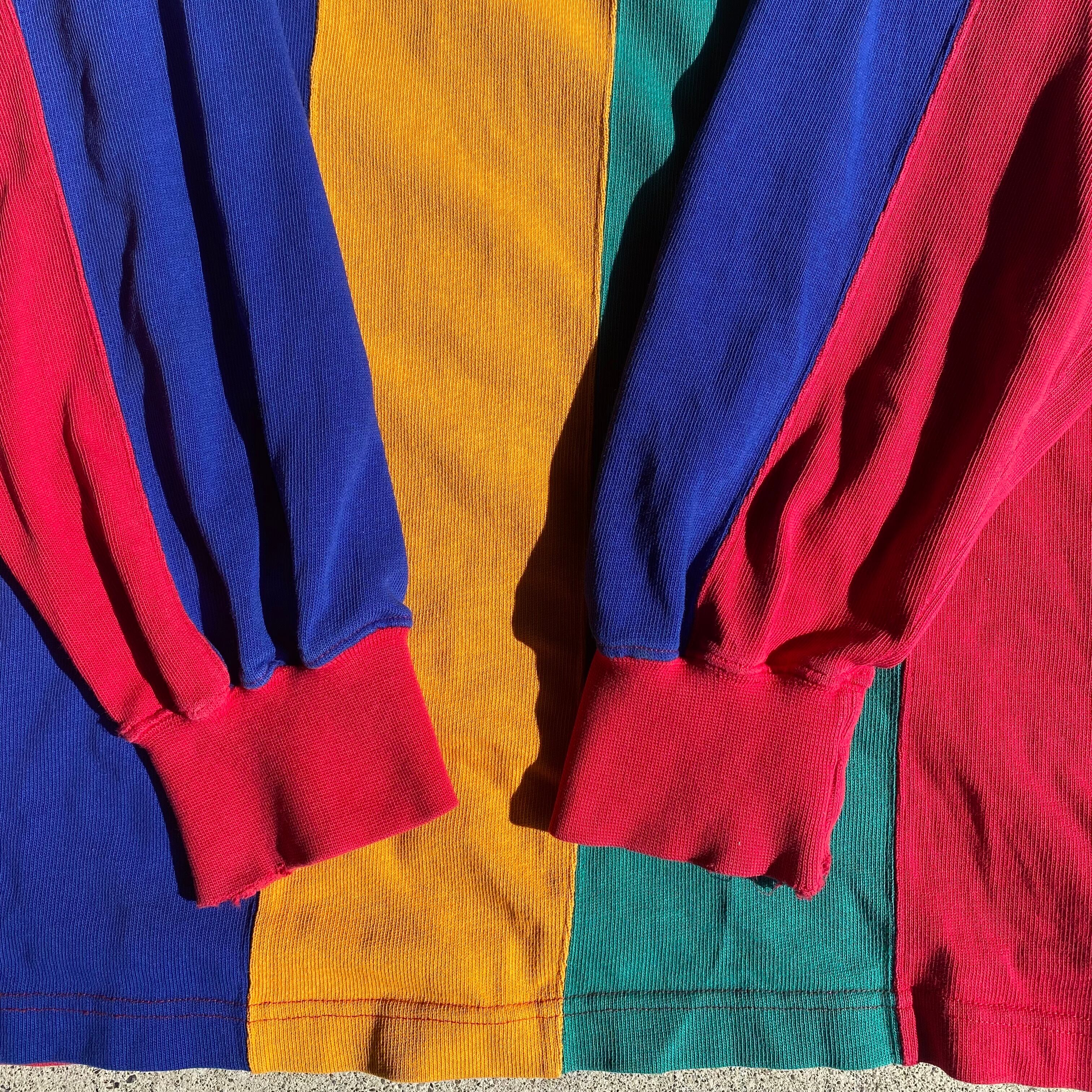 80's ST JOHN'S BAY マルチカラーストライプ ラガーシャツ 長袖 USA古着 セントジョンズベイ XXL
