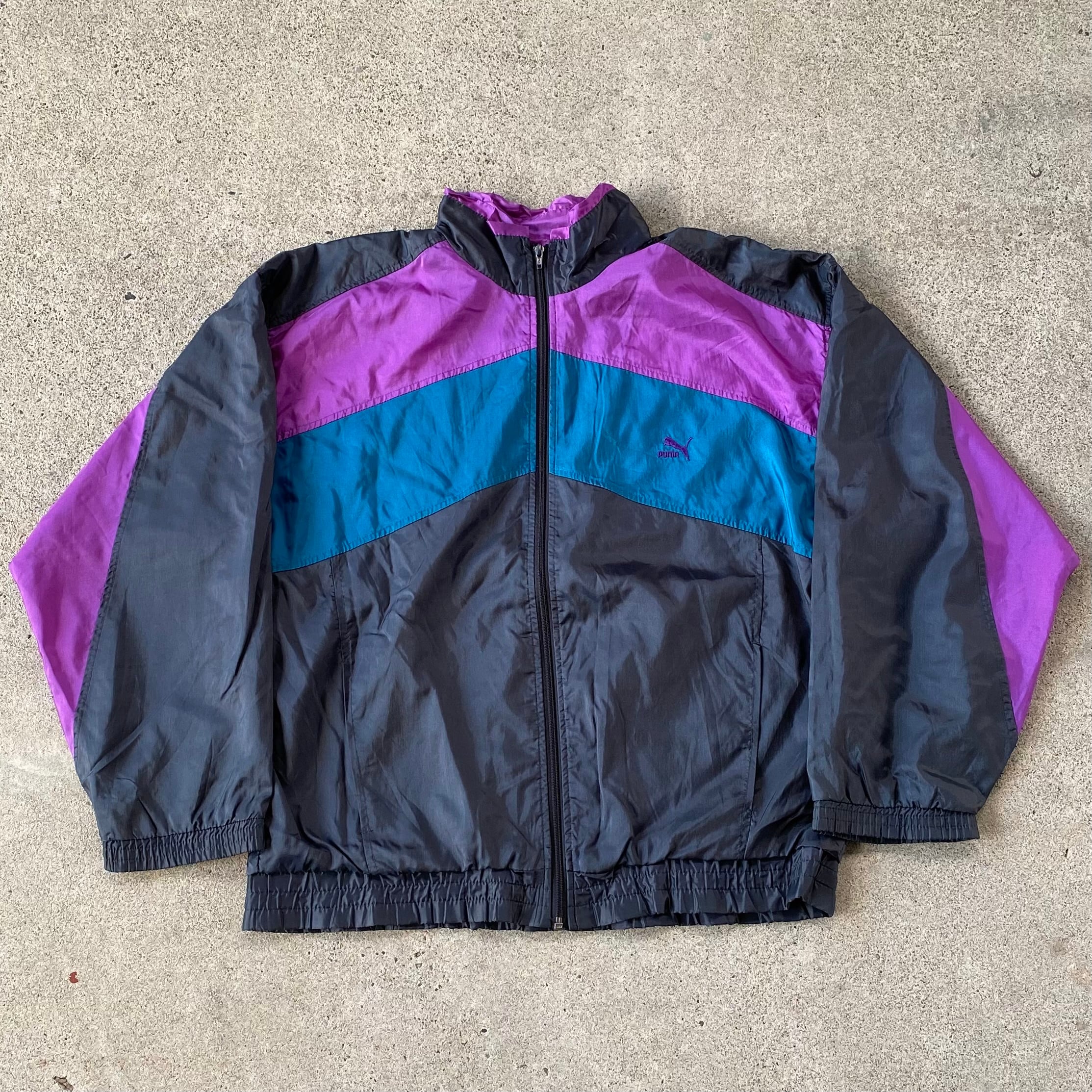 80's PUMA nylon track jacket. 古着 プーマ ナイロントラックジャケット ジャージ ブラック 黒 XL ユーロ