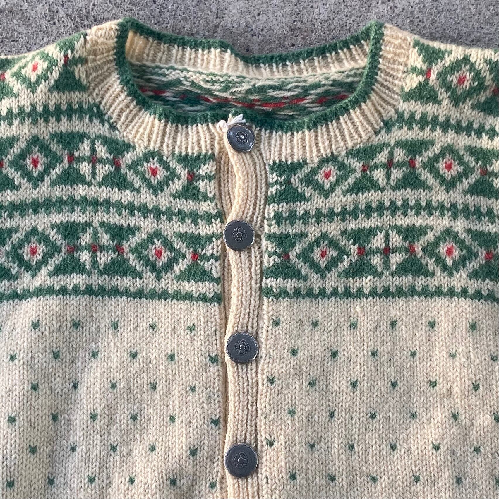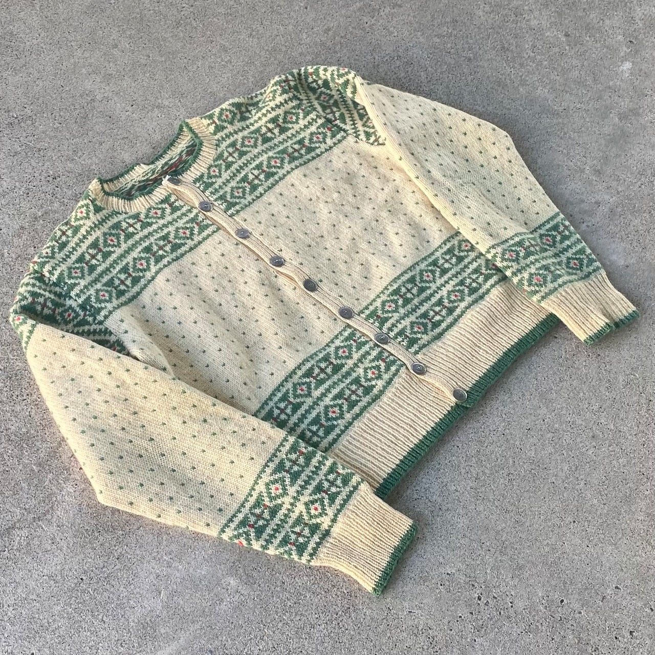 70's Nordic pattern wool knit cardigan. 古着 ノルディックカーディガン ウールチロルニット ホワイト メタルボタン 古着 白 レディース
