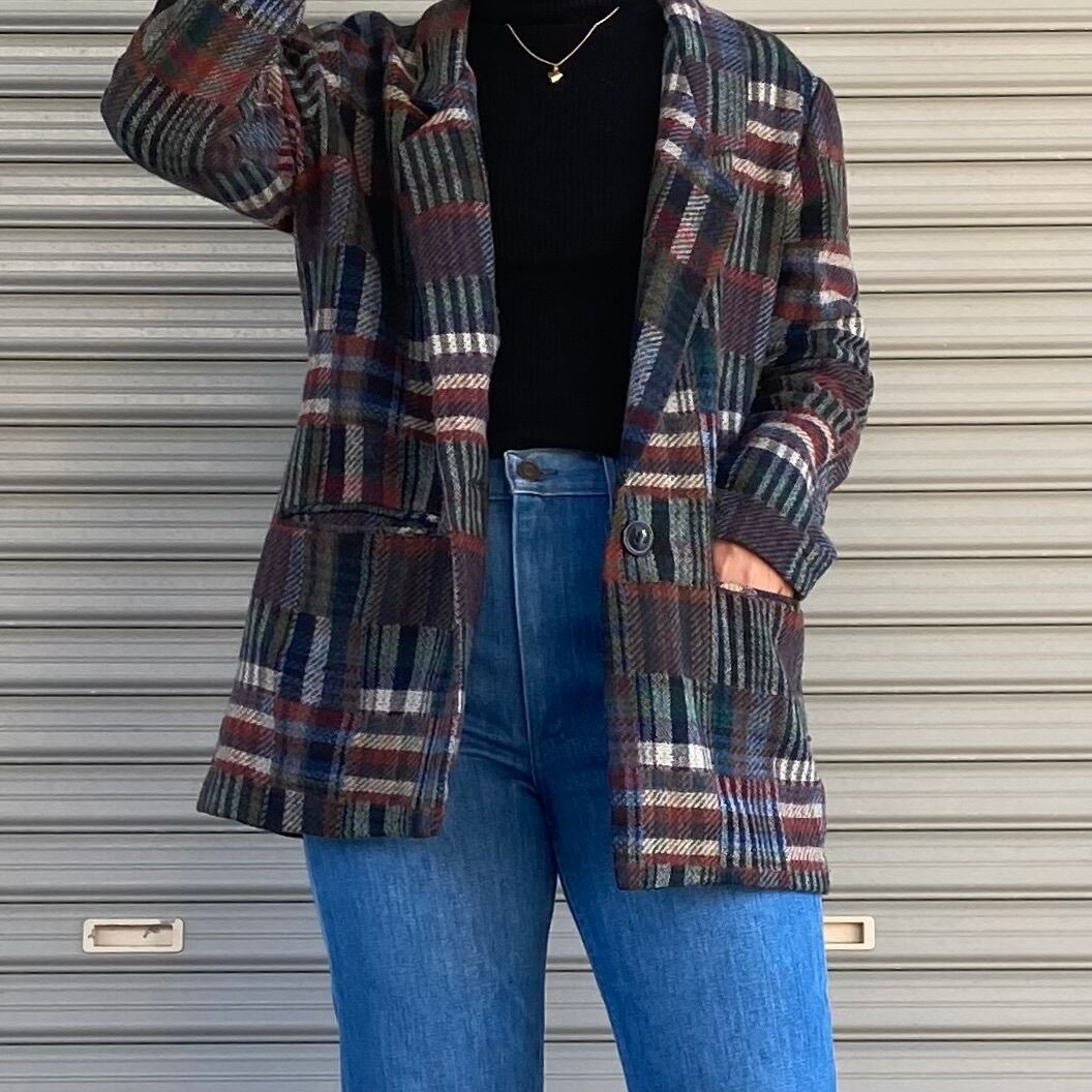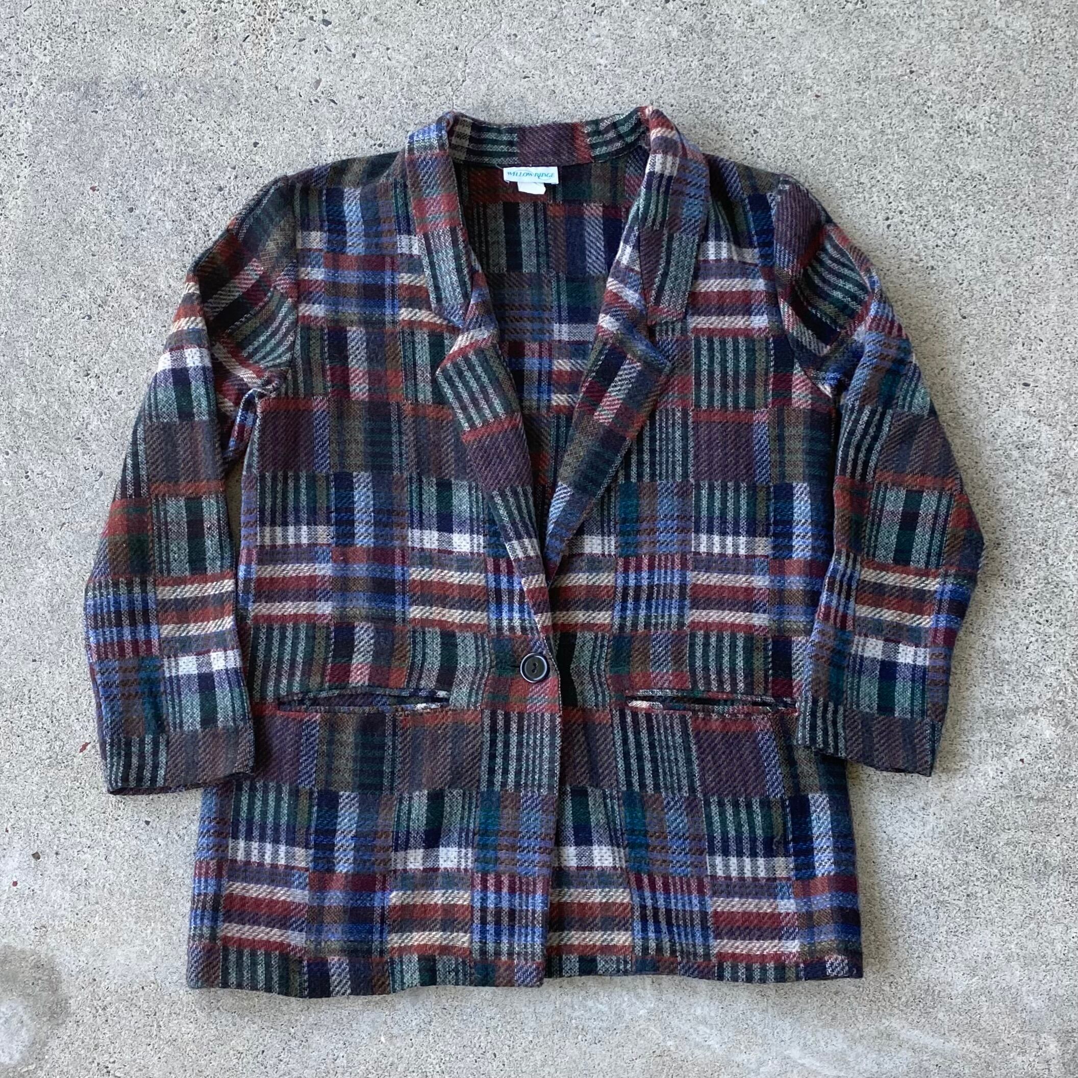 80's USA製 ウールチェックイージージャケット 古着 vintage レディース クレイジーパターンチェック