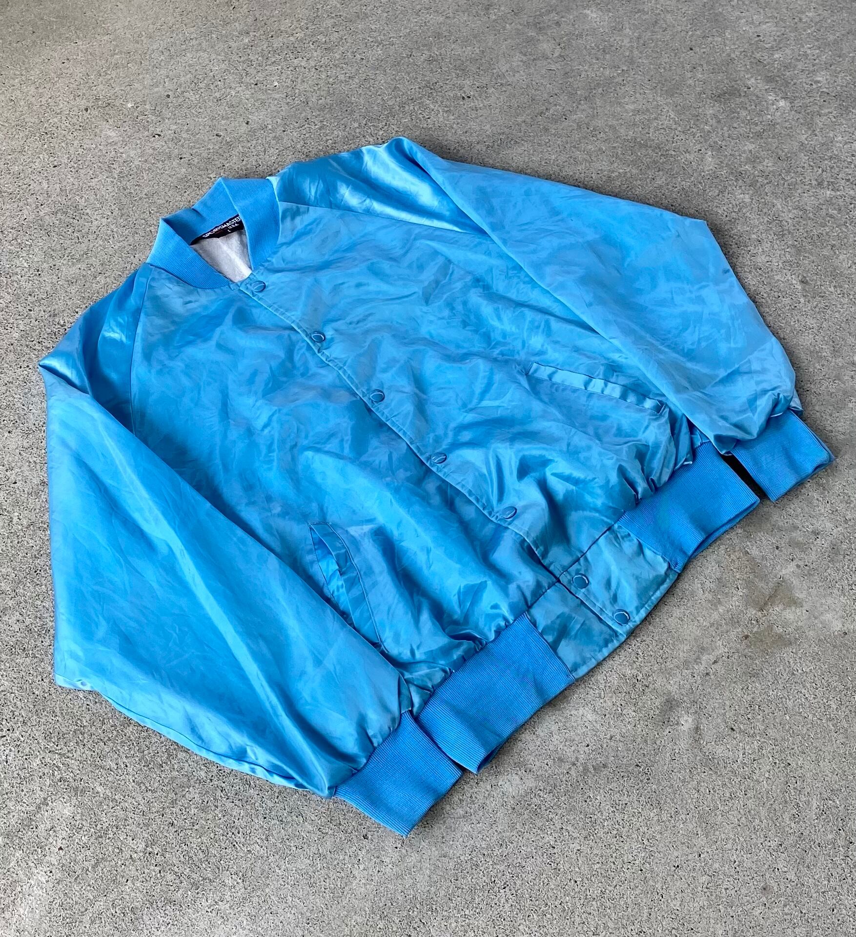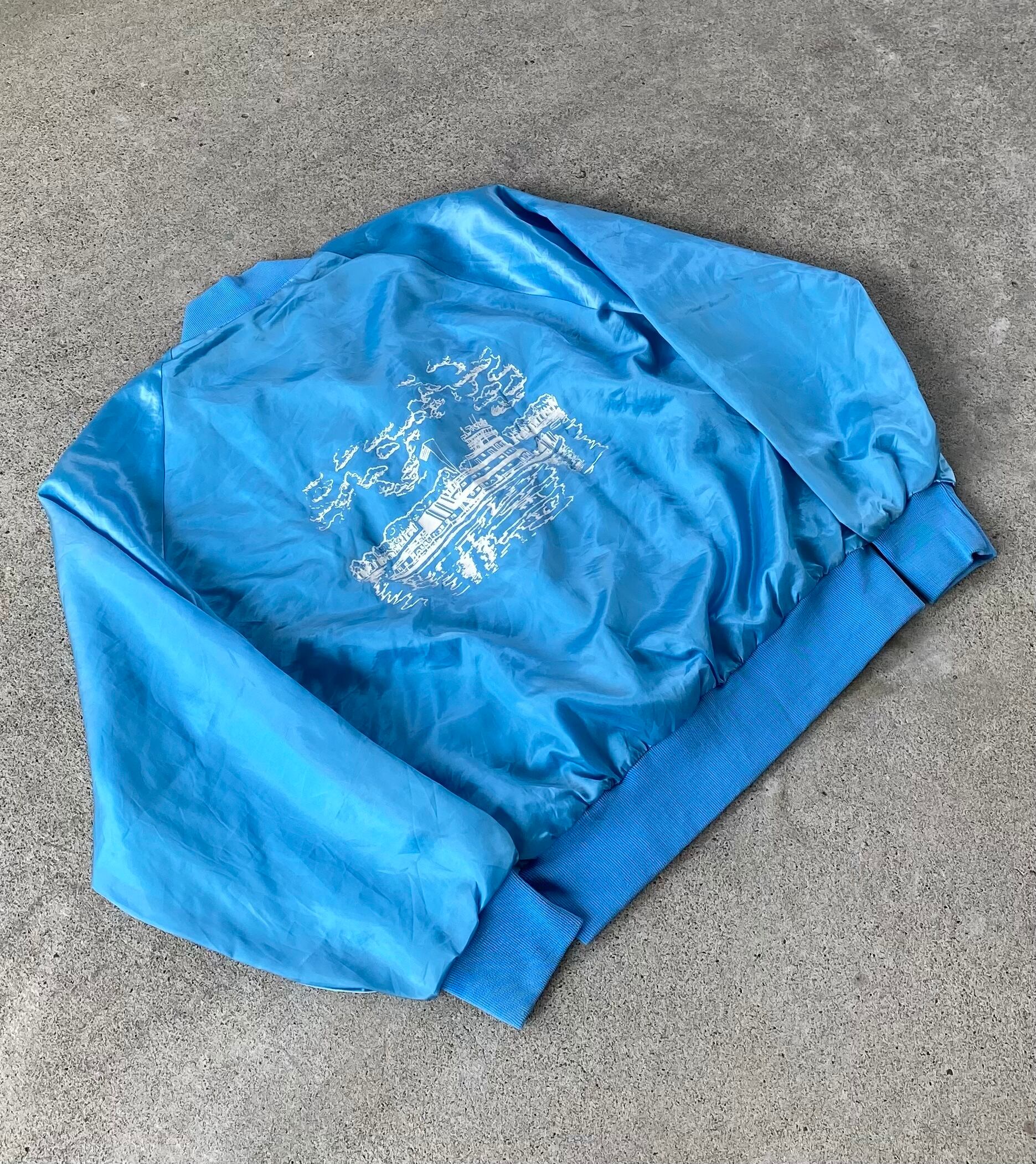 【90's】USA製 ナイロンスタジアムジャケット サックスブルー 船 スタジャン 古着 L