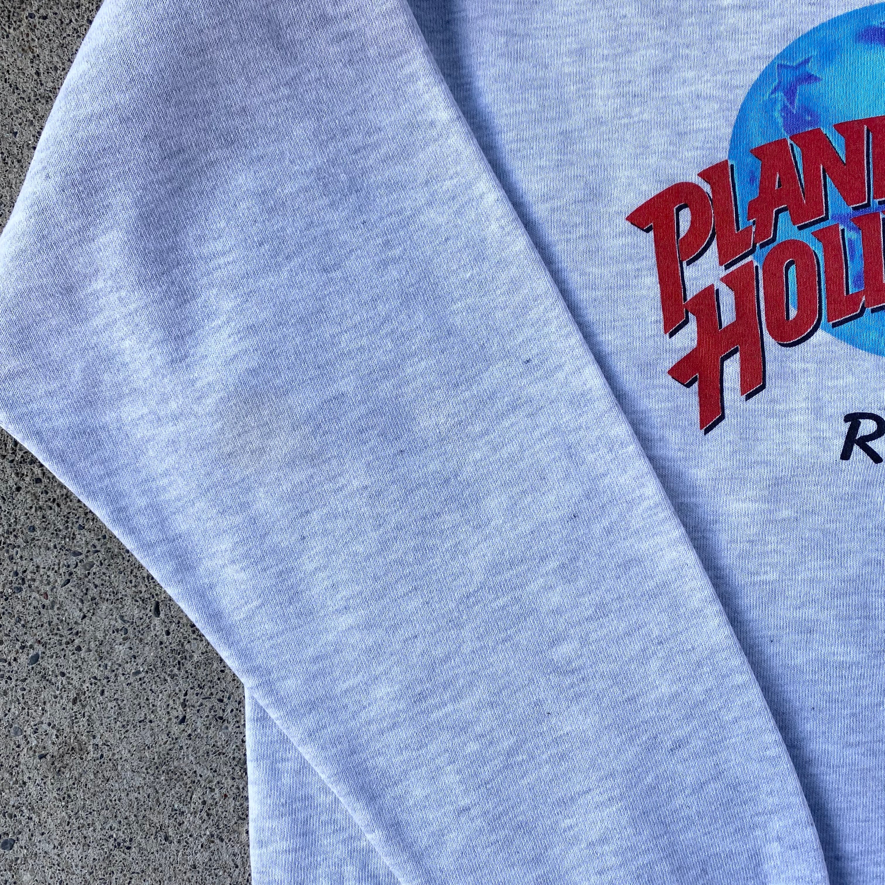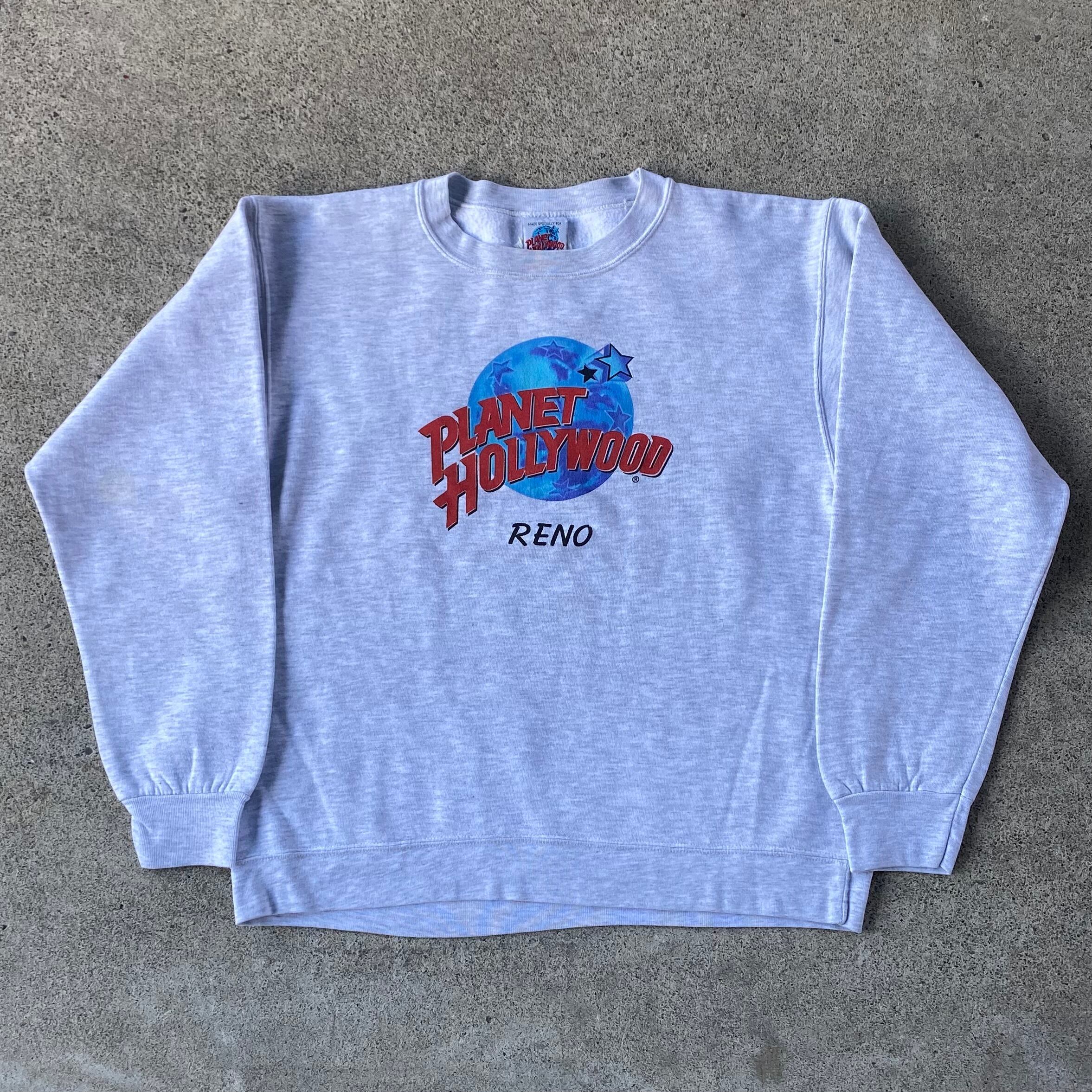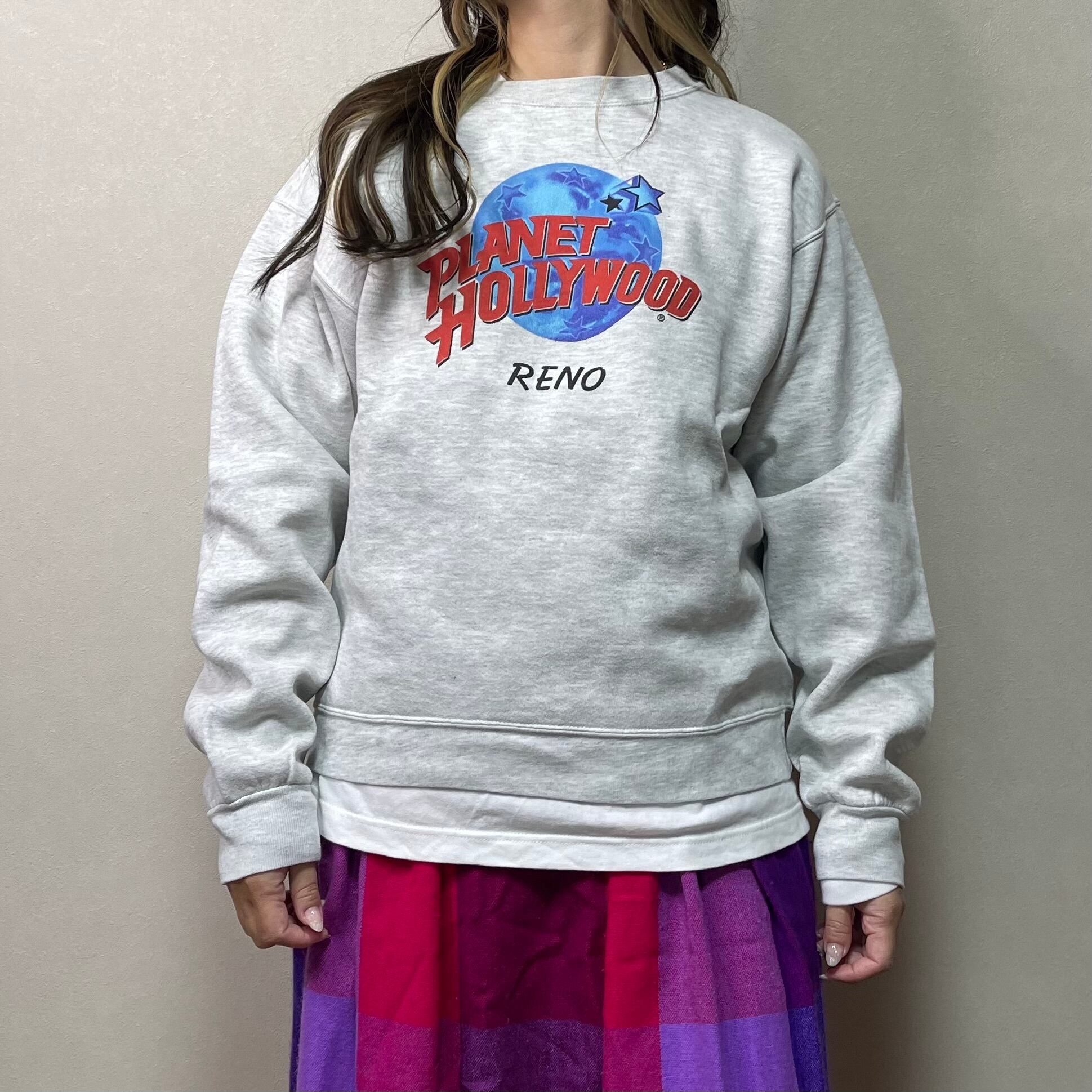90's USA製 PLANET HOLLYWOOD プリントスウェット アッシュグレー M プラネットハリウッド RENO 古着