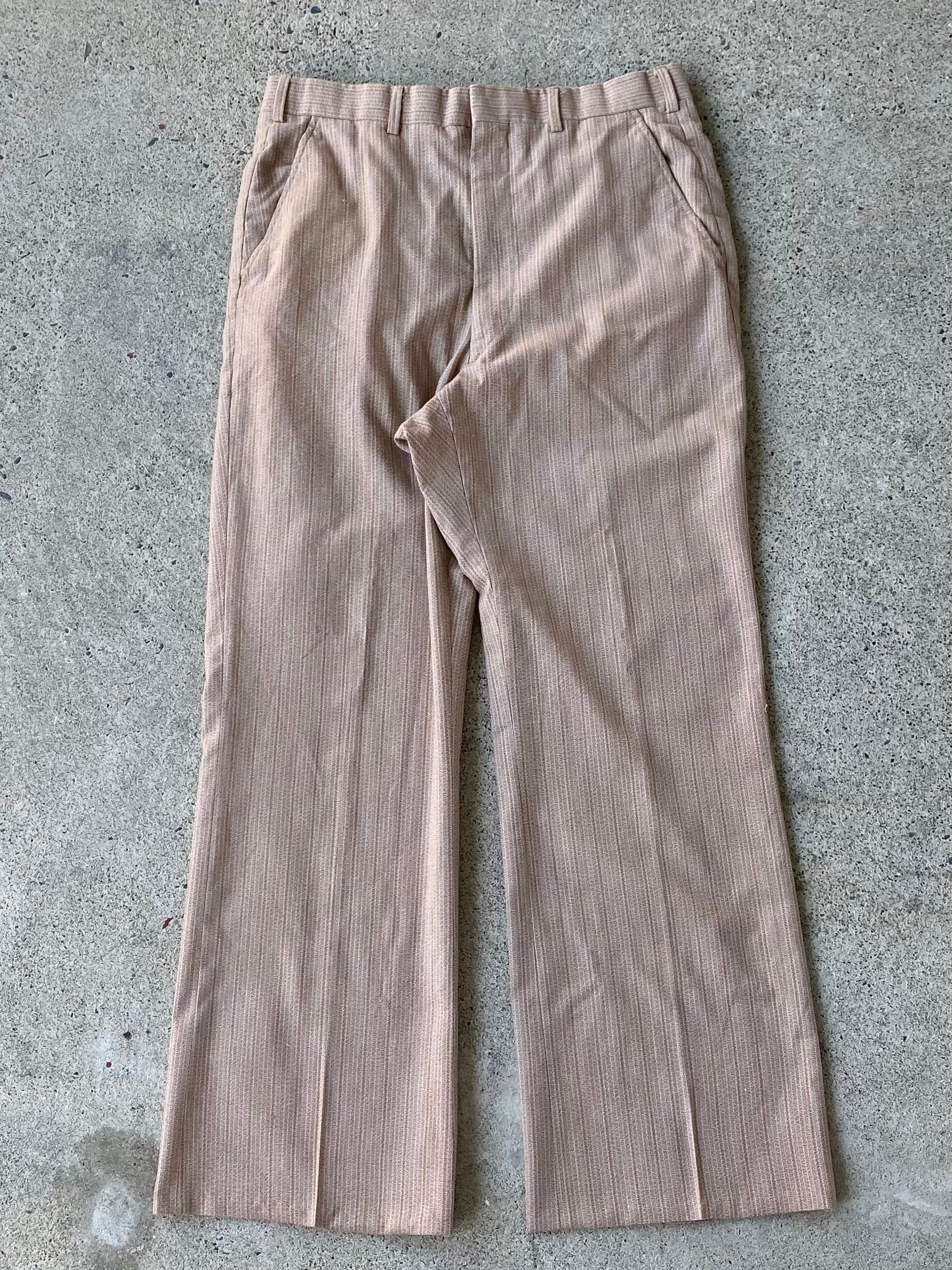 【70's】ストライプフレアスラックス ベージュ 古着 パンツ