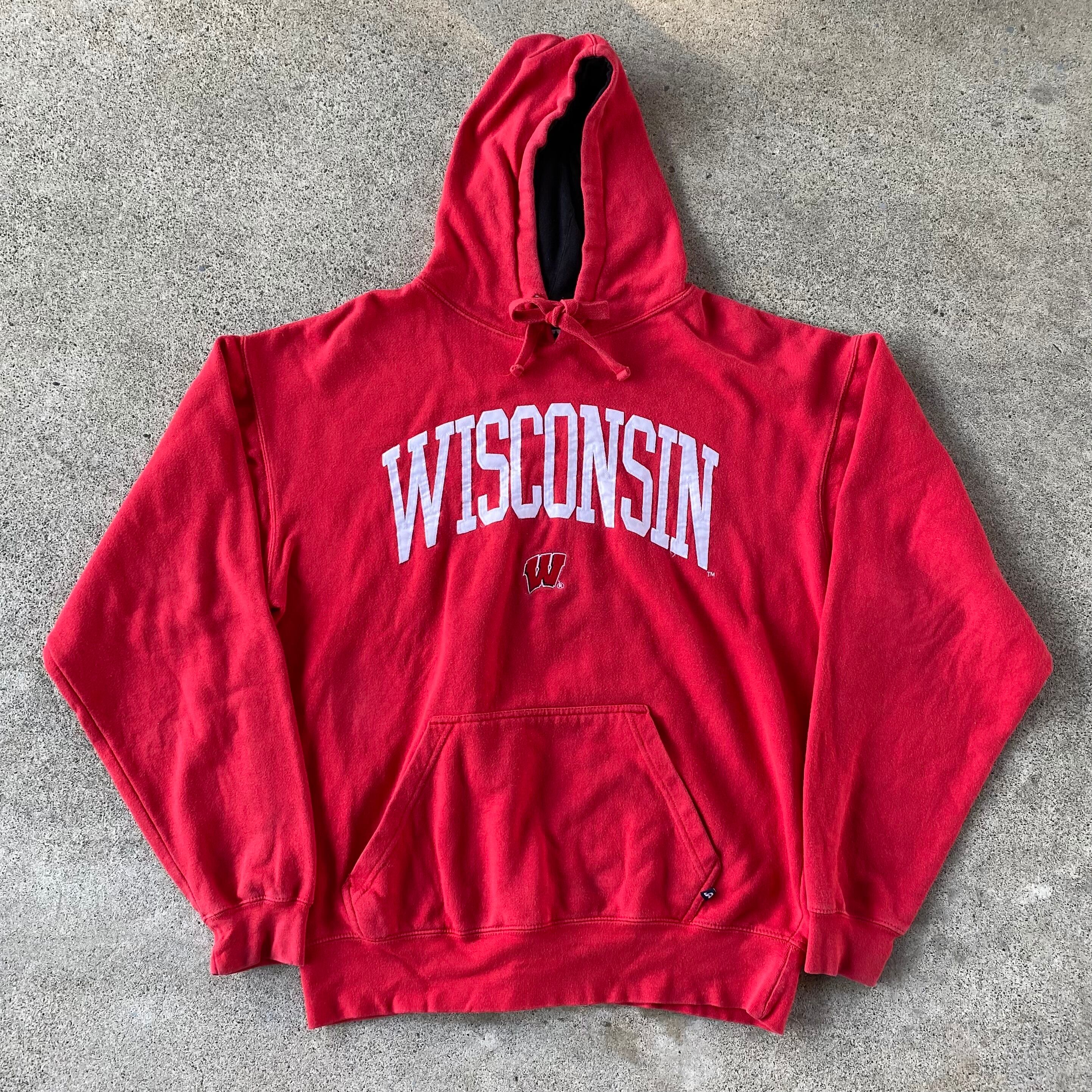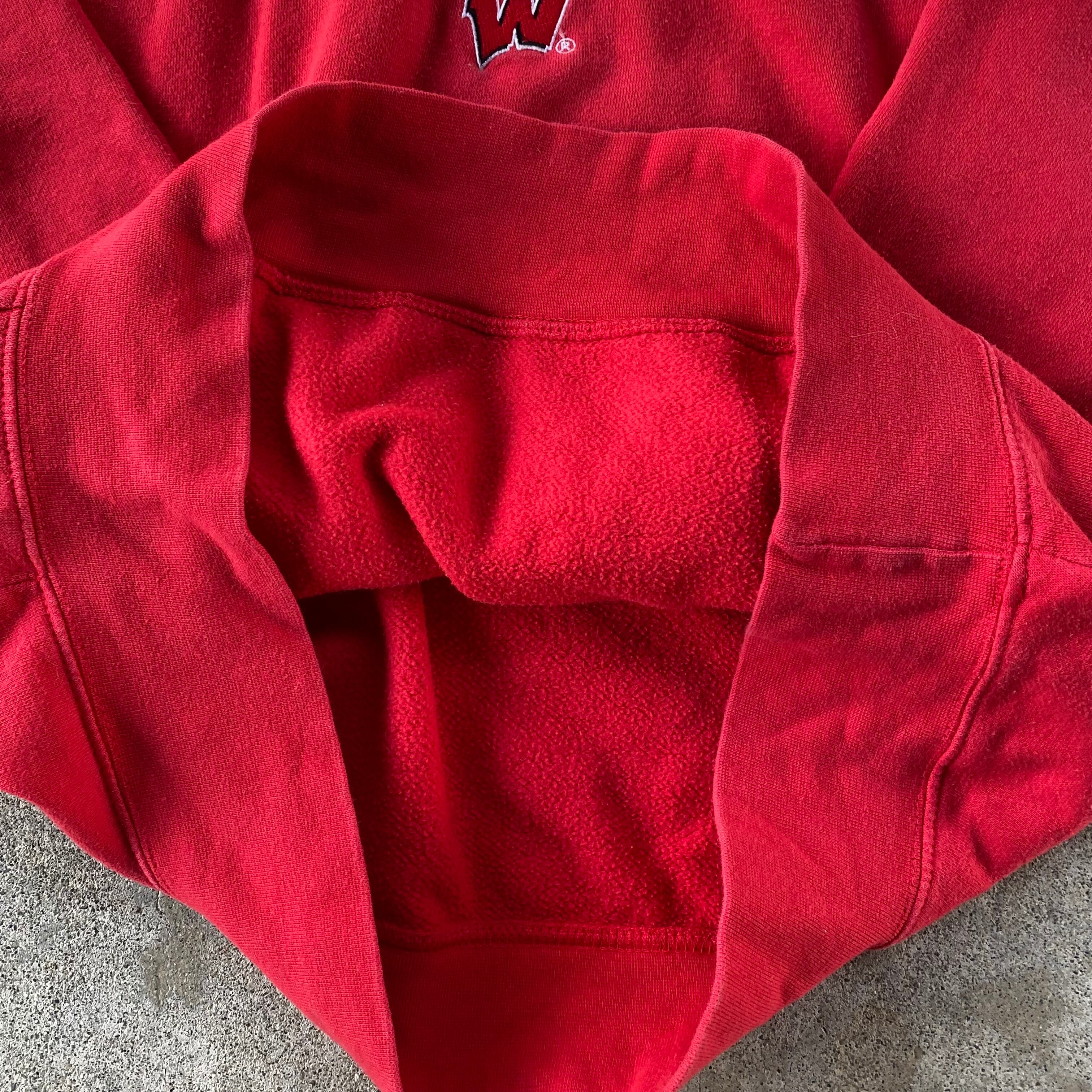 90's NFL Wisconsin Badgers sweat hoodie. 古着 スウェットパーカー アメフト レッド バジャーズ 赤 L
