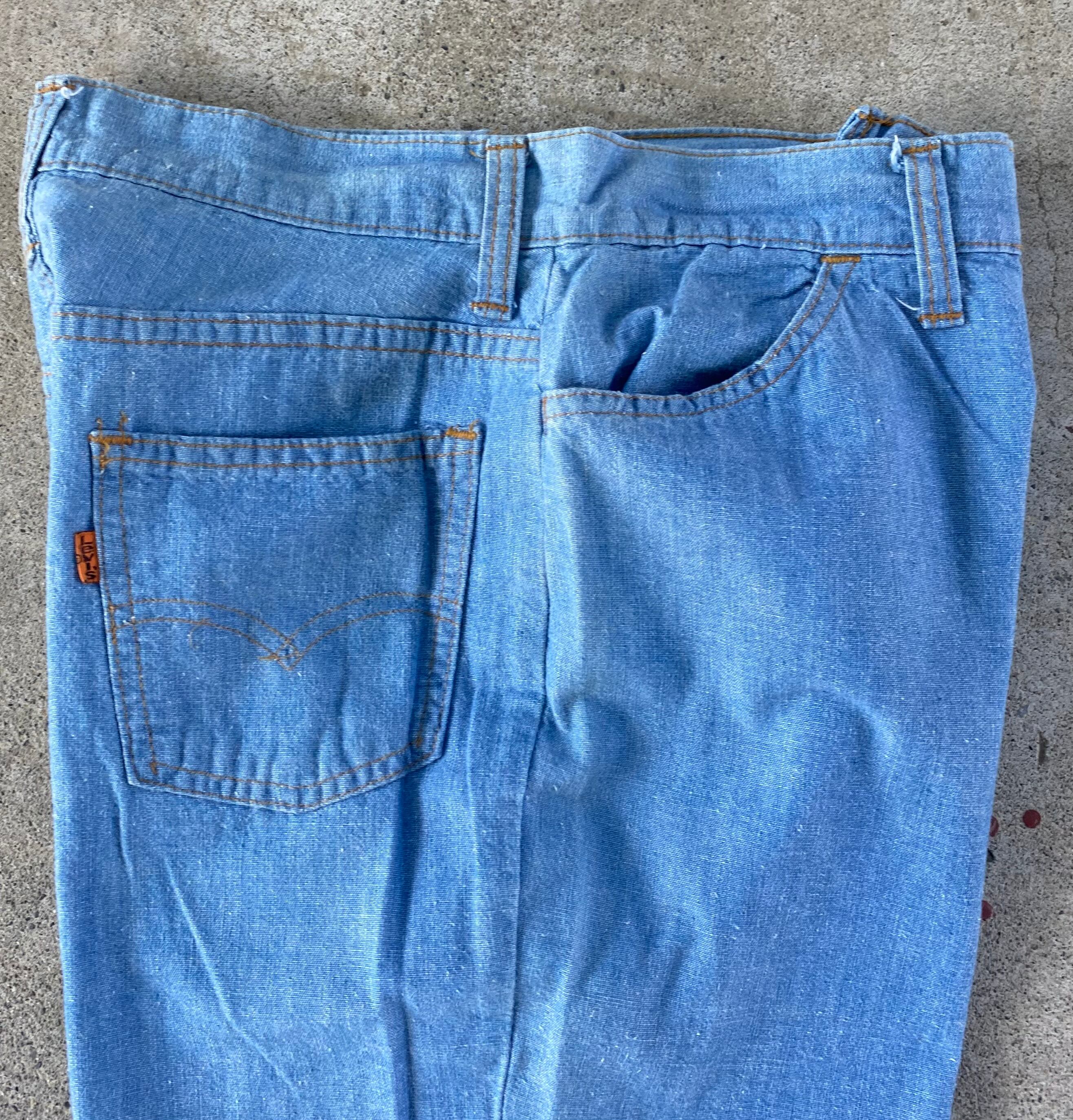 強いフレアシルエットが特徴的な70'sオレンジタブリーバイス。