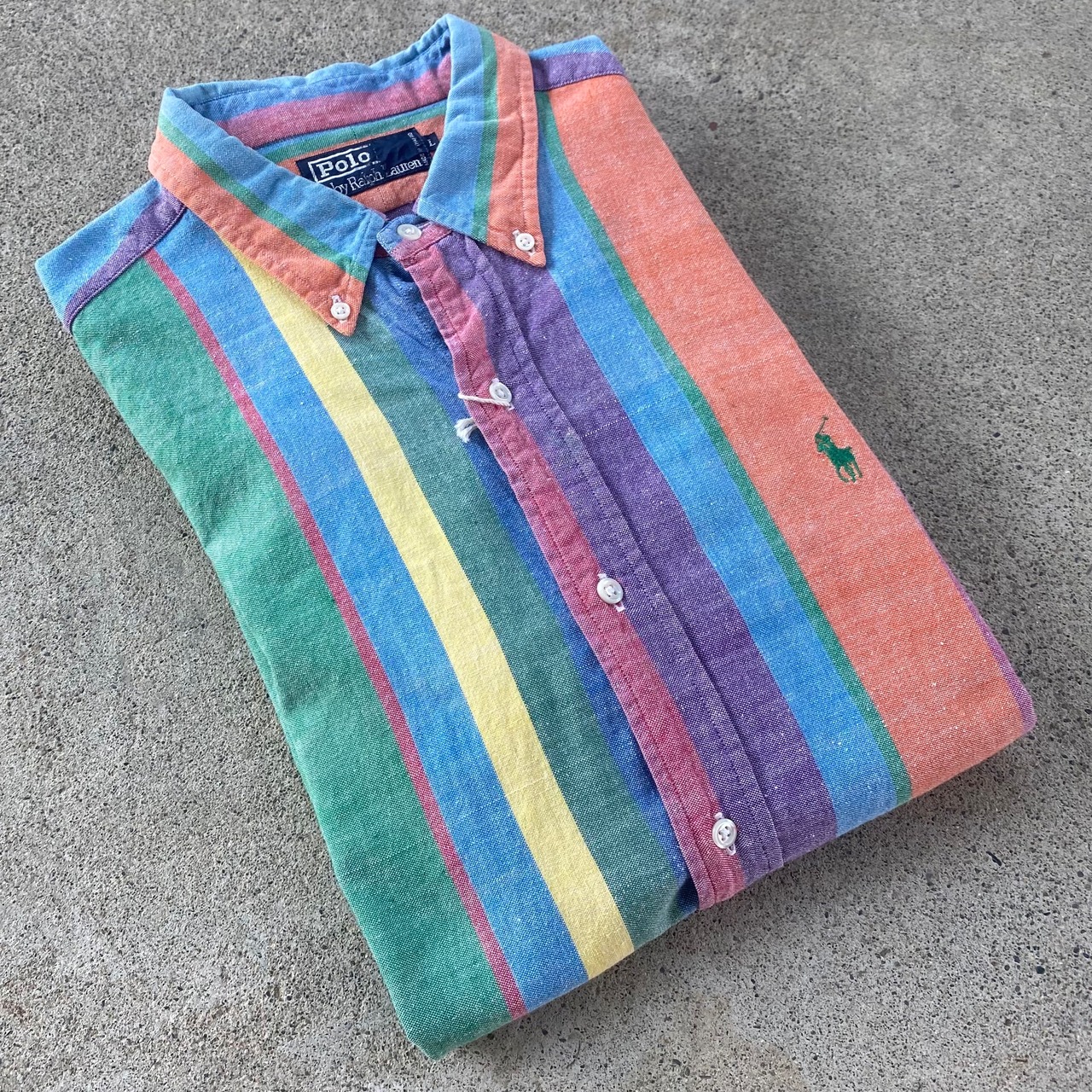 【90's】Polo by Ralph Lauren マルチカラーストライプ ボタンダウンシャツ オックスフォード レインボー ラルフローレン