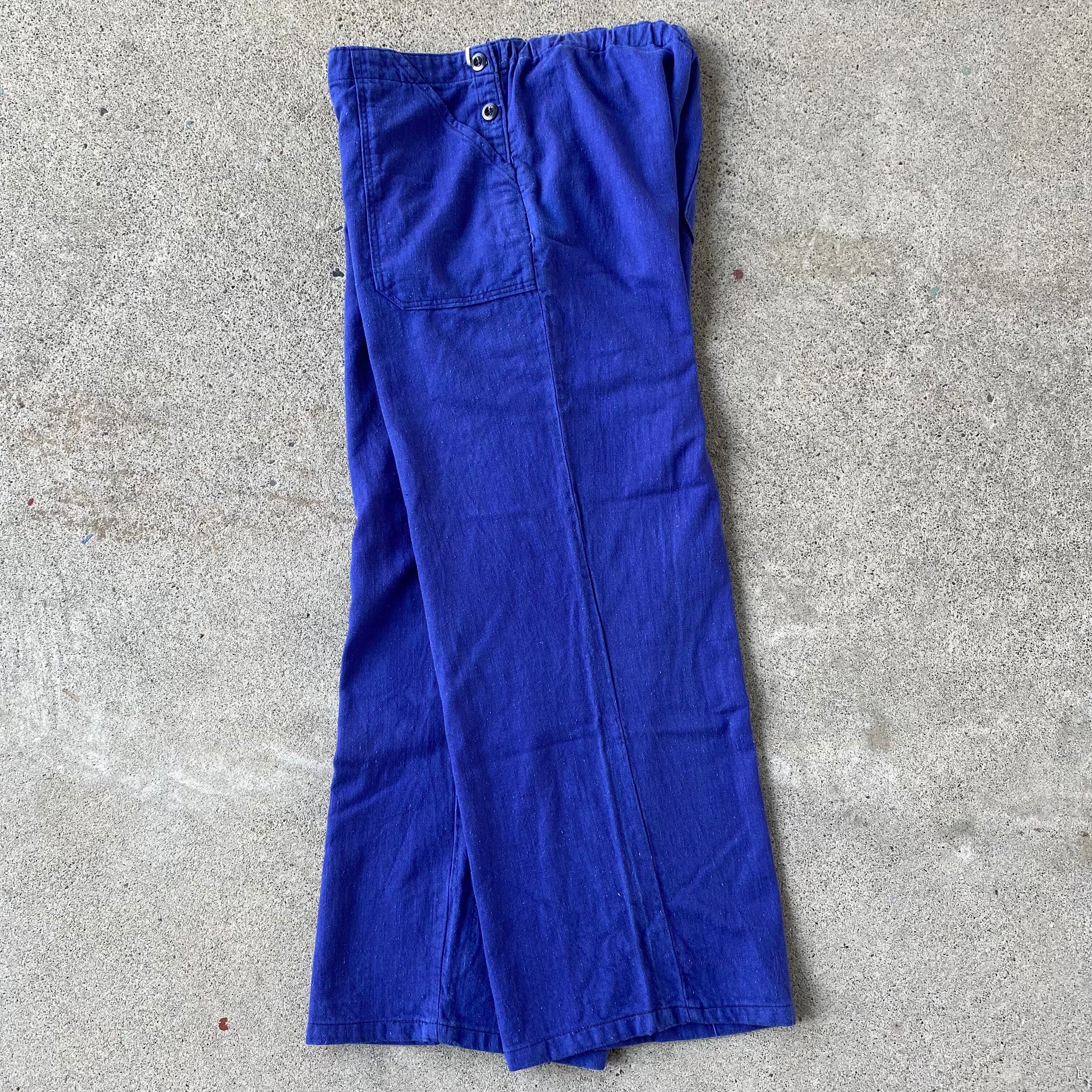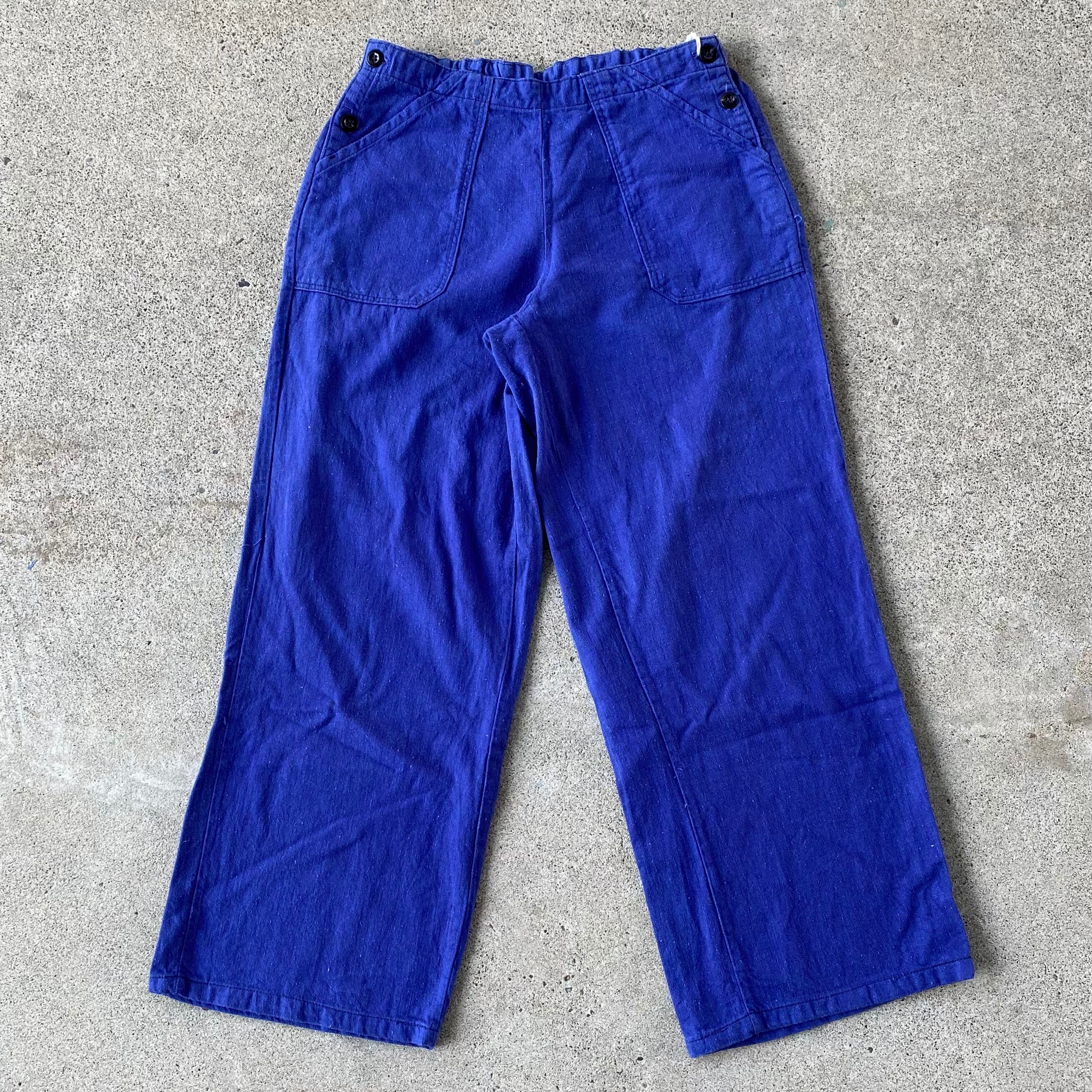 80's ユーロワークパンツ ワイドイージーパンツ ロイヤルブルー 古着 ミリタリー ワーク
