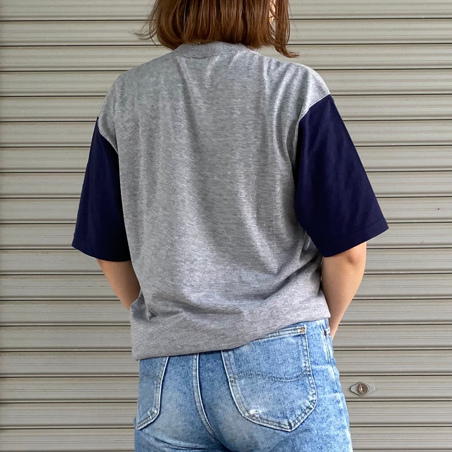 [USA製] 90's VELVA SHEEN ディズニーフレンズT グレーネイビー 切り替え Disney ミッキー