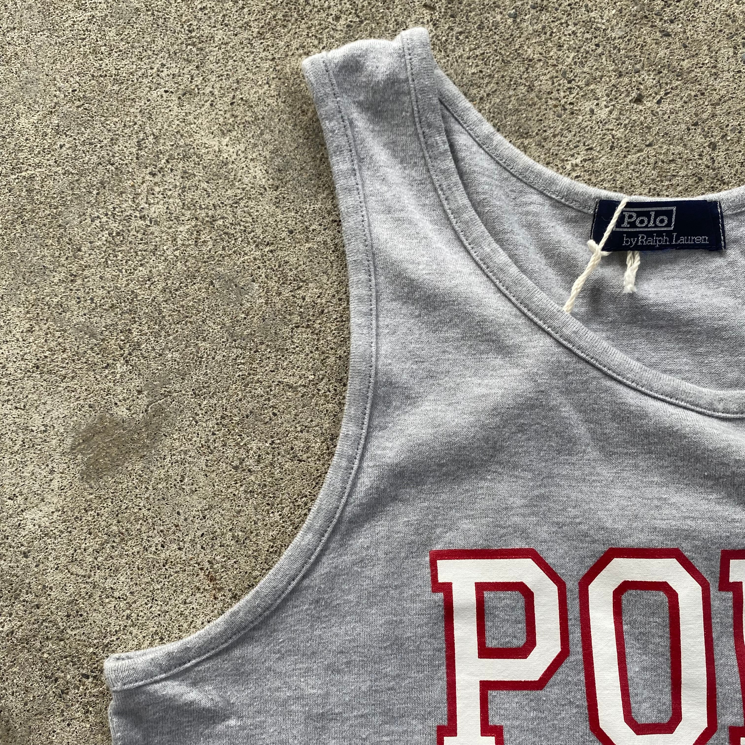 シンプルなブランドロゴデザインのオールドポロタンクトップ。
