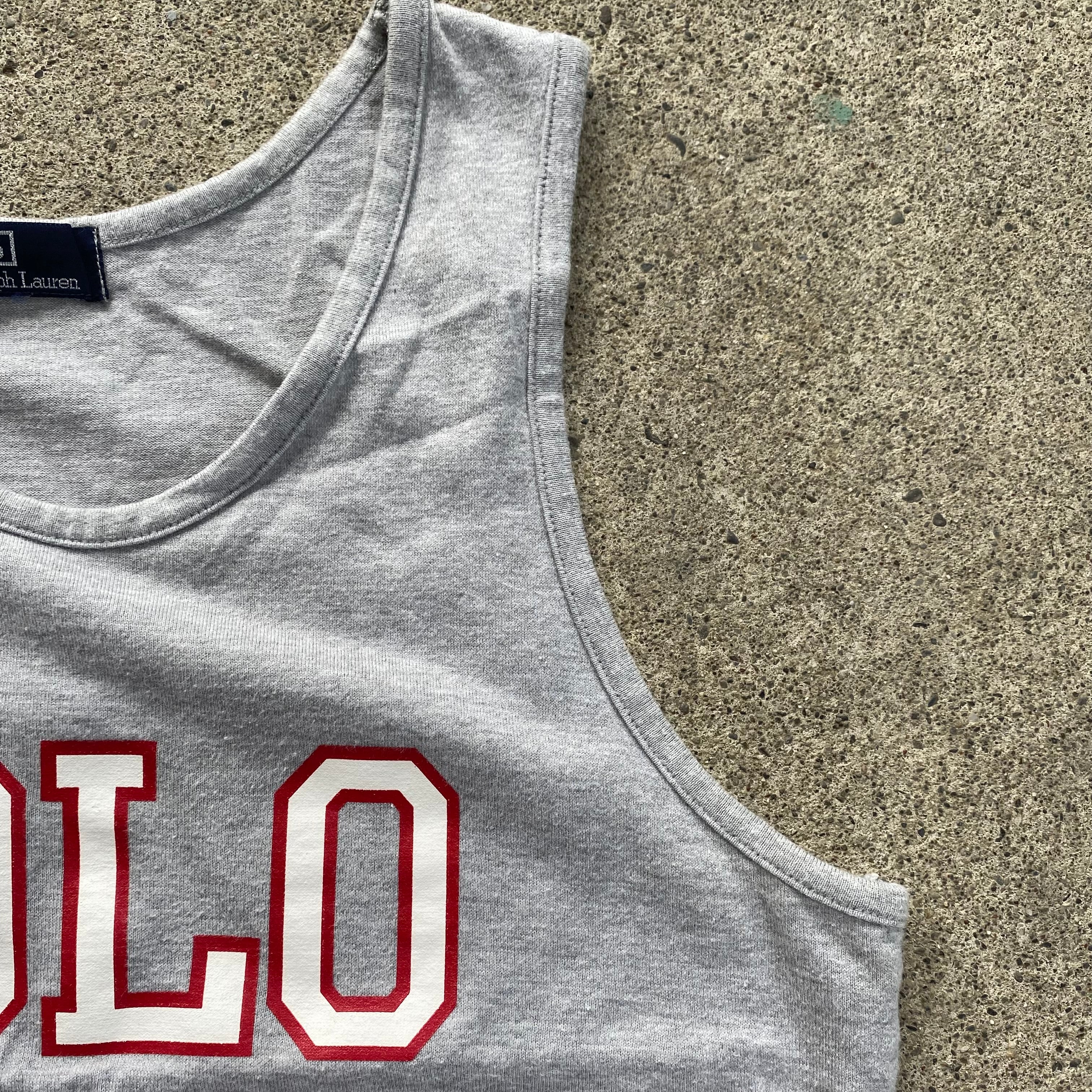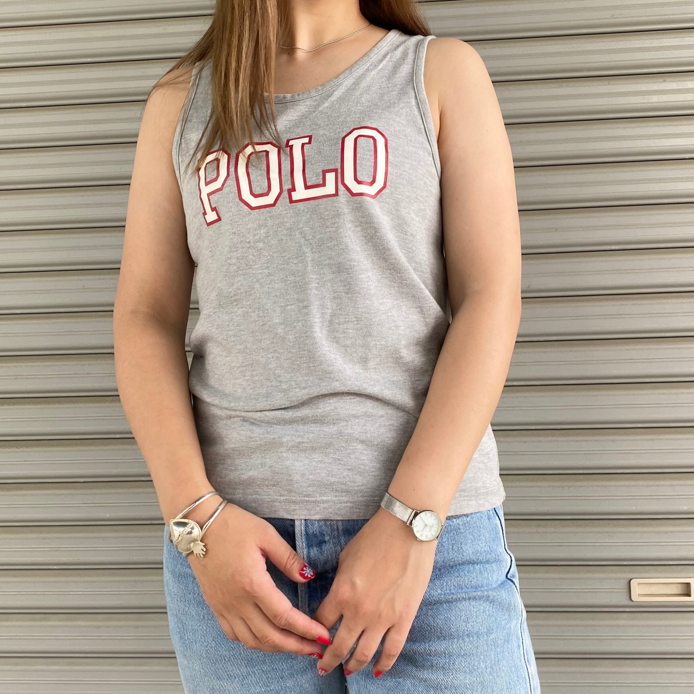 【90's】Polo by Ralph Lauren ロゴプリントタンクトップ ポロバイラルフローレン グレー レディース ノースリーブ 古着