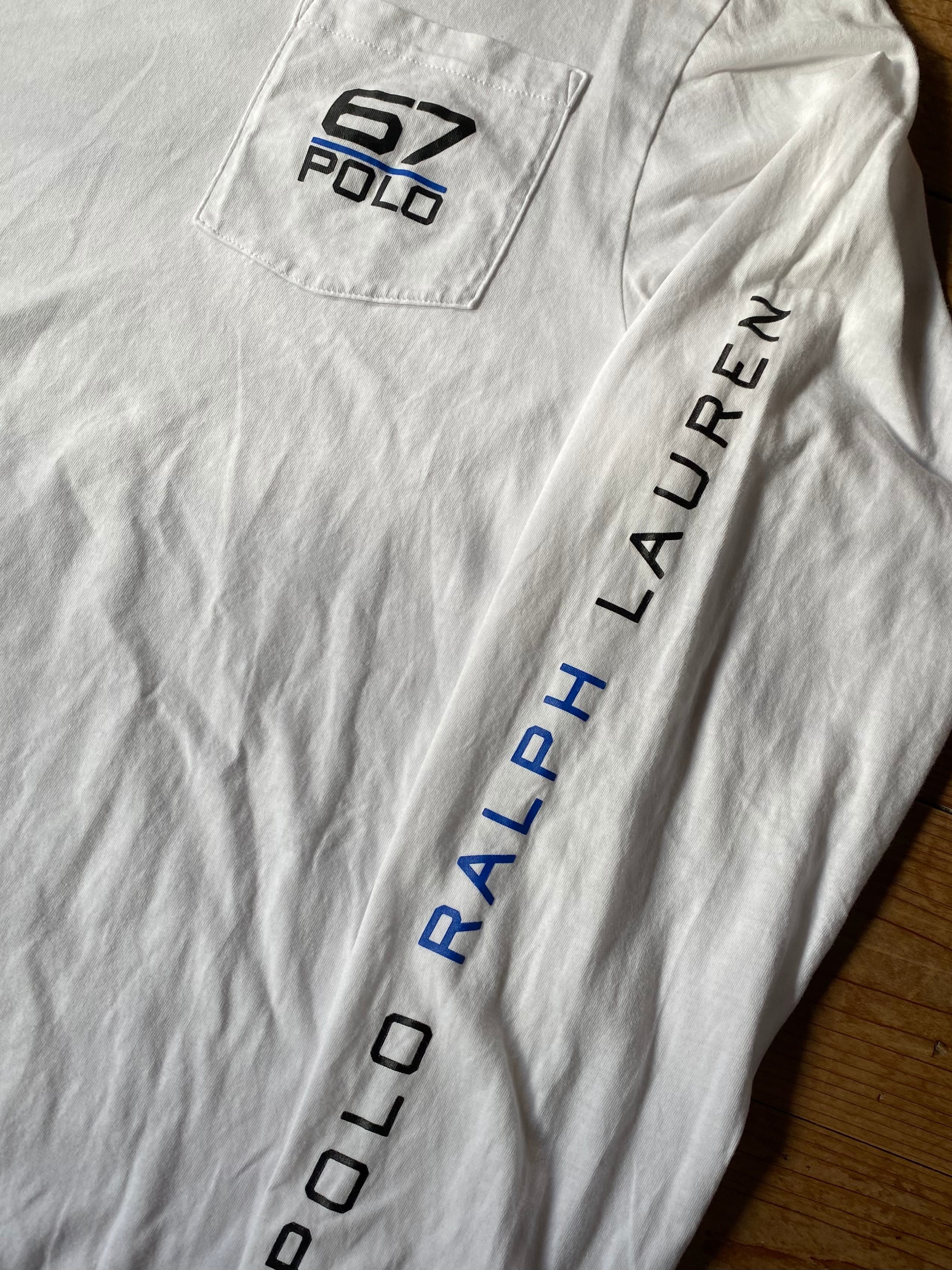 【OLD】POLO RALPH LAUREN ポケットプリントロンT ホワイト USA古着 ポロラルフローレン