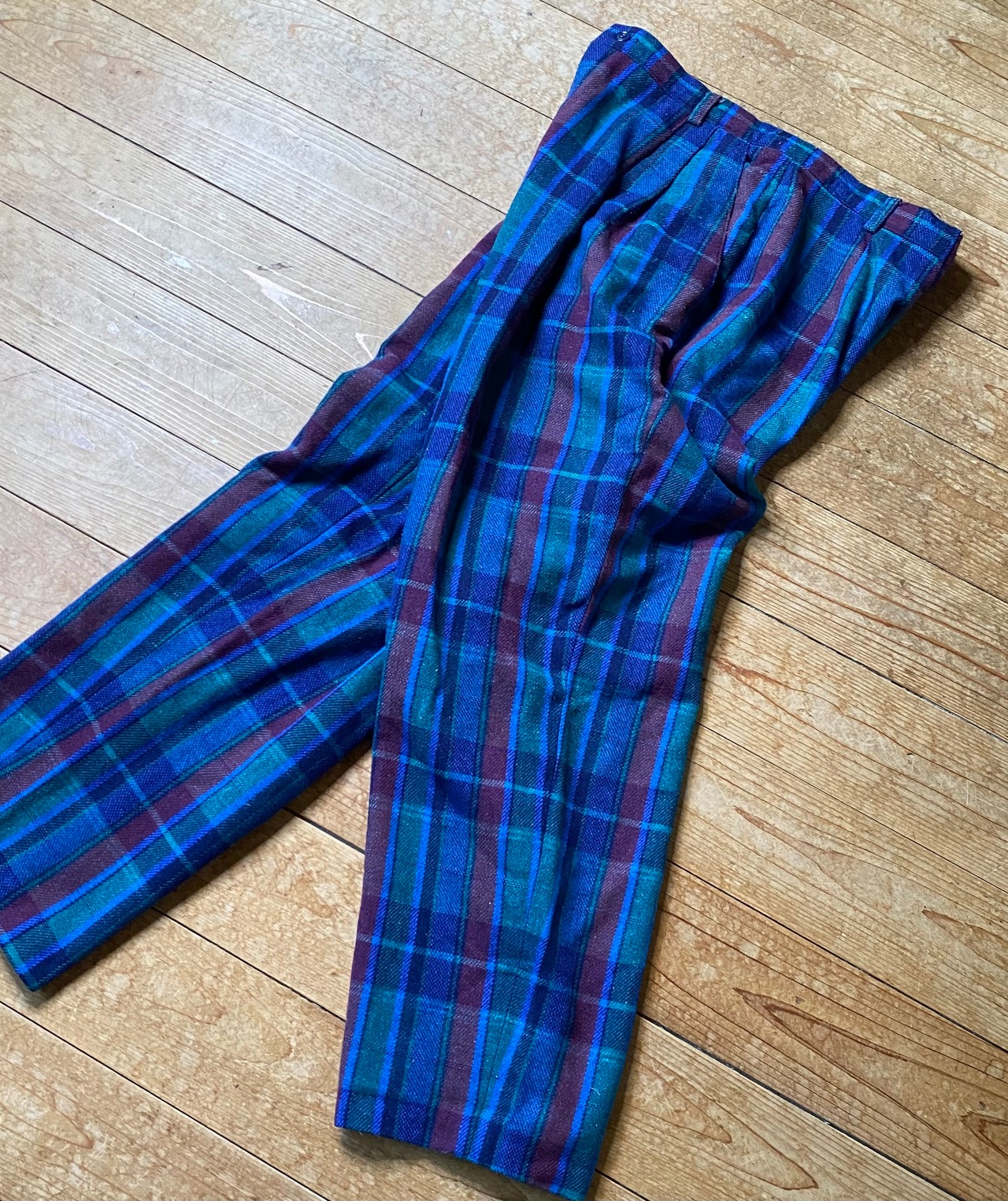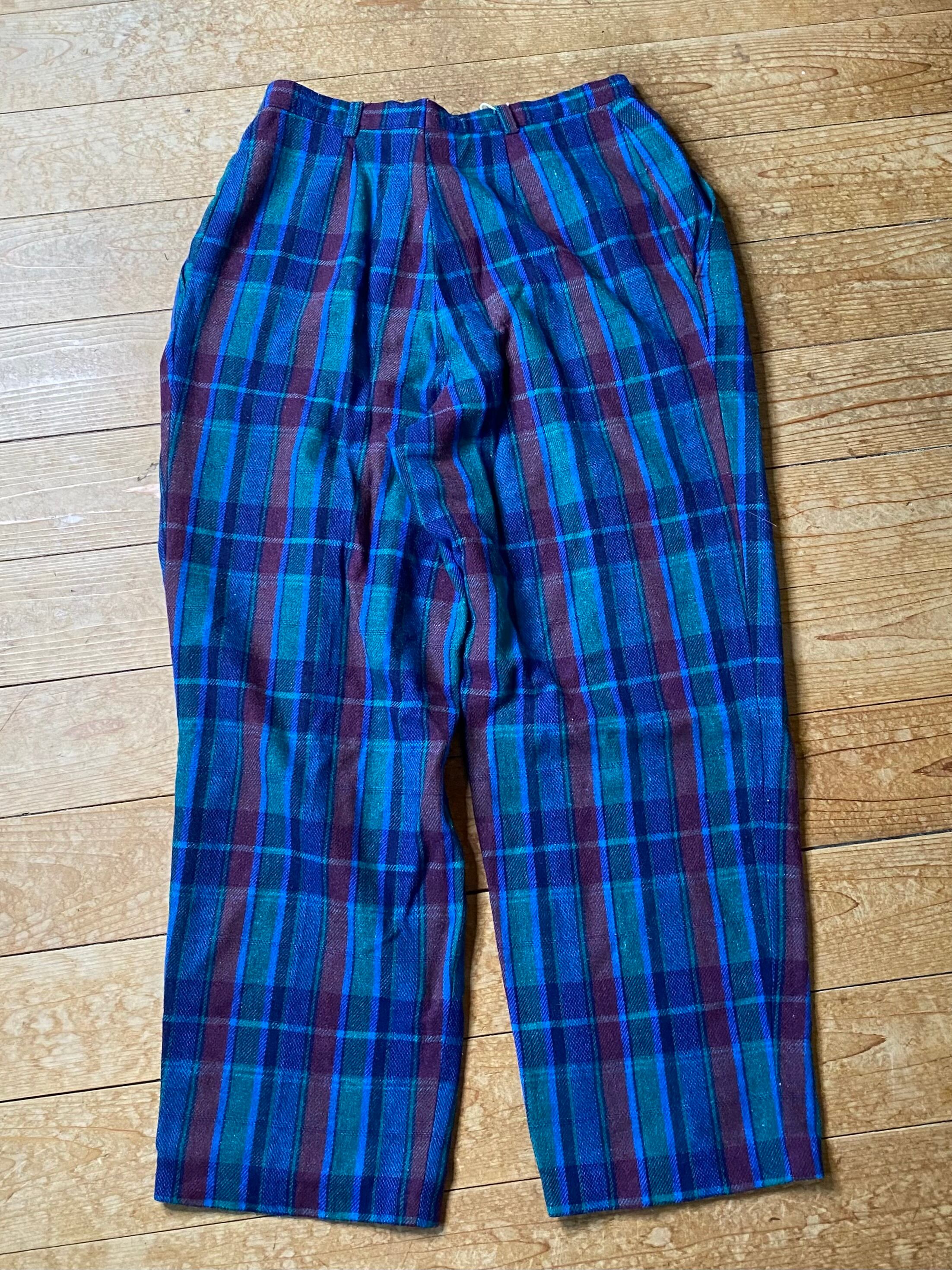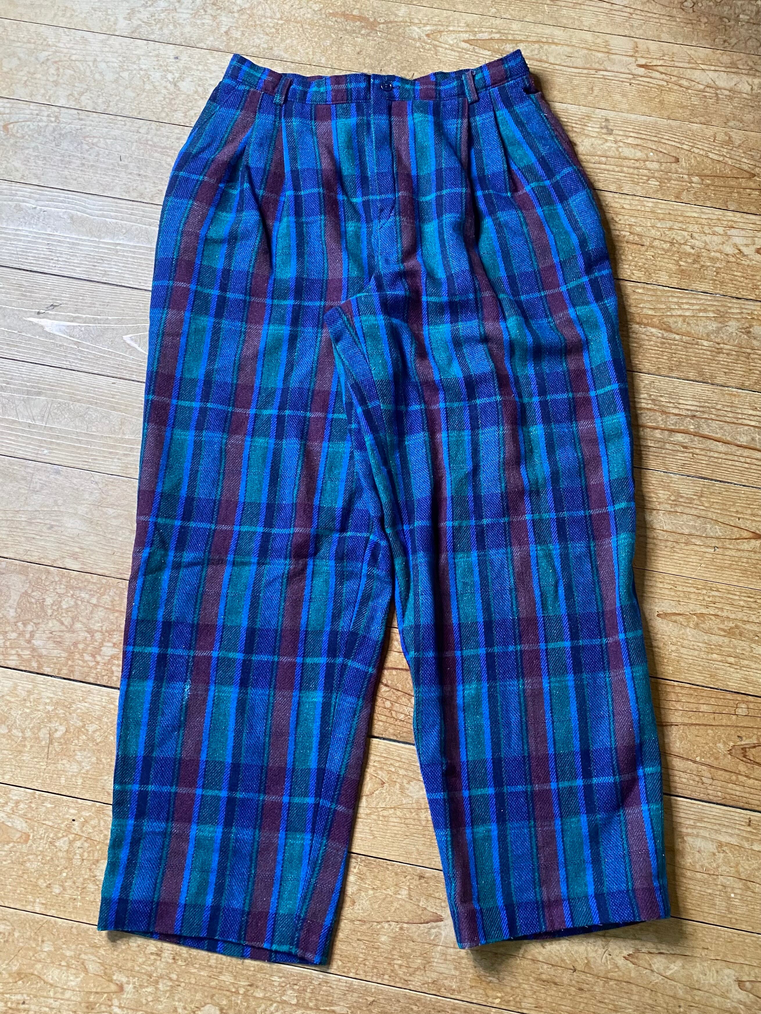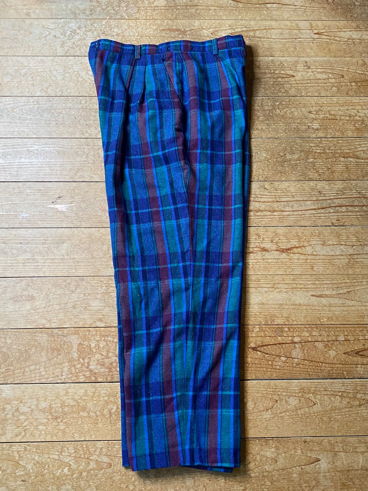 80~90's チェックテーパードプリーツウールパンツ Euro vintage ヨーロッパ古着