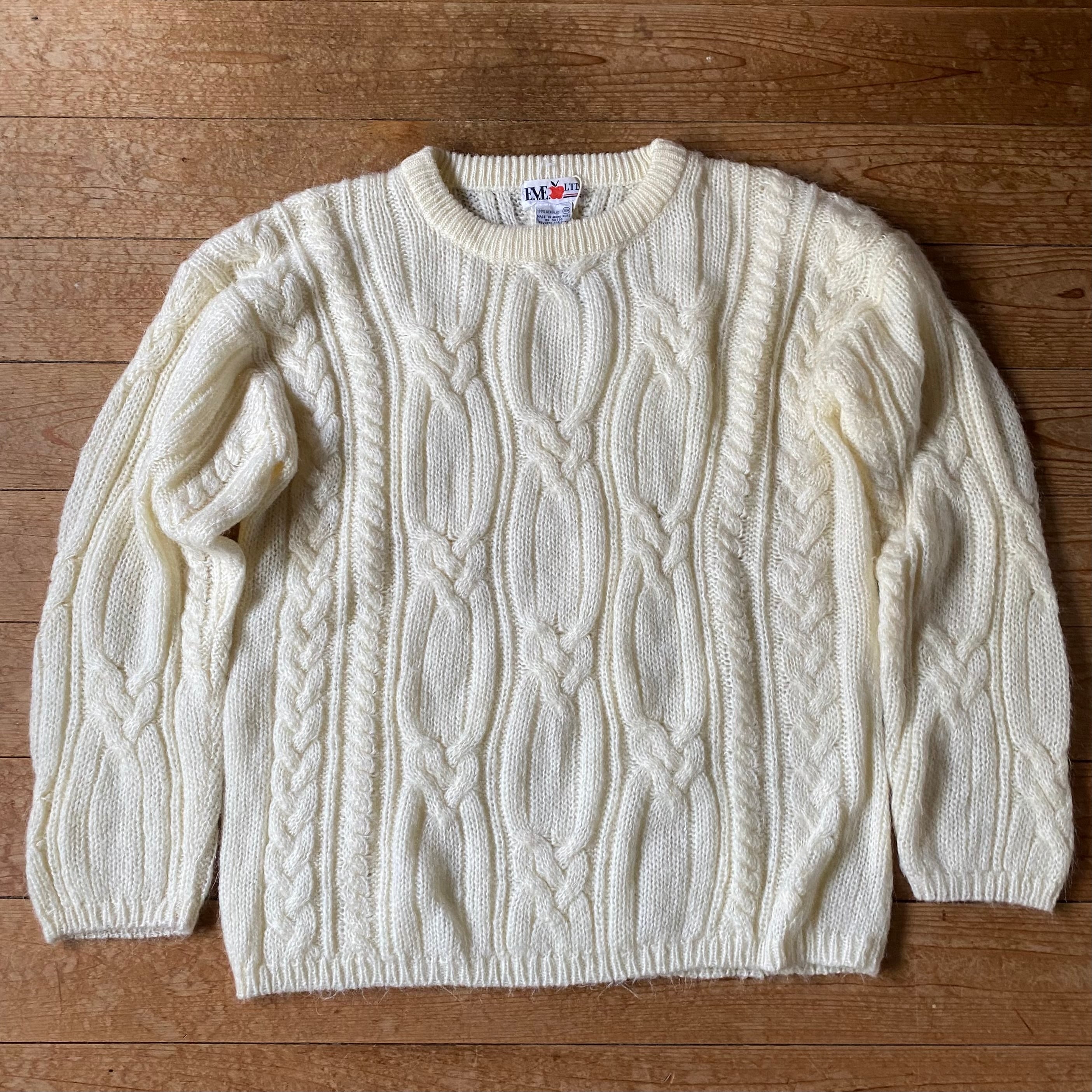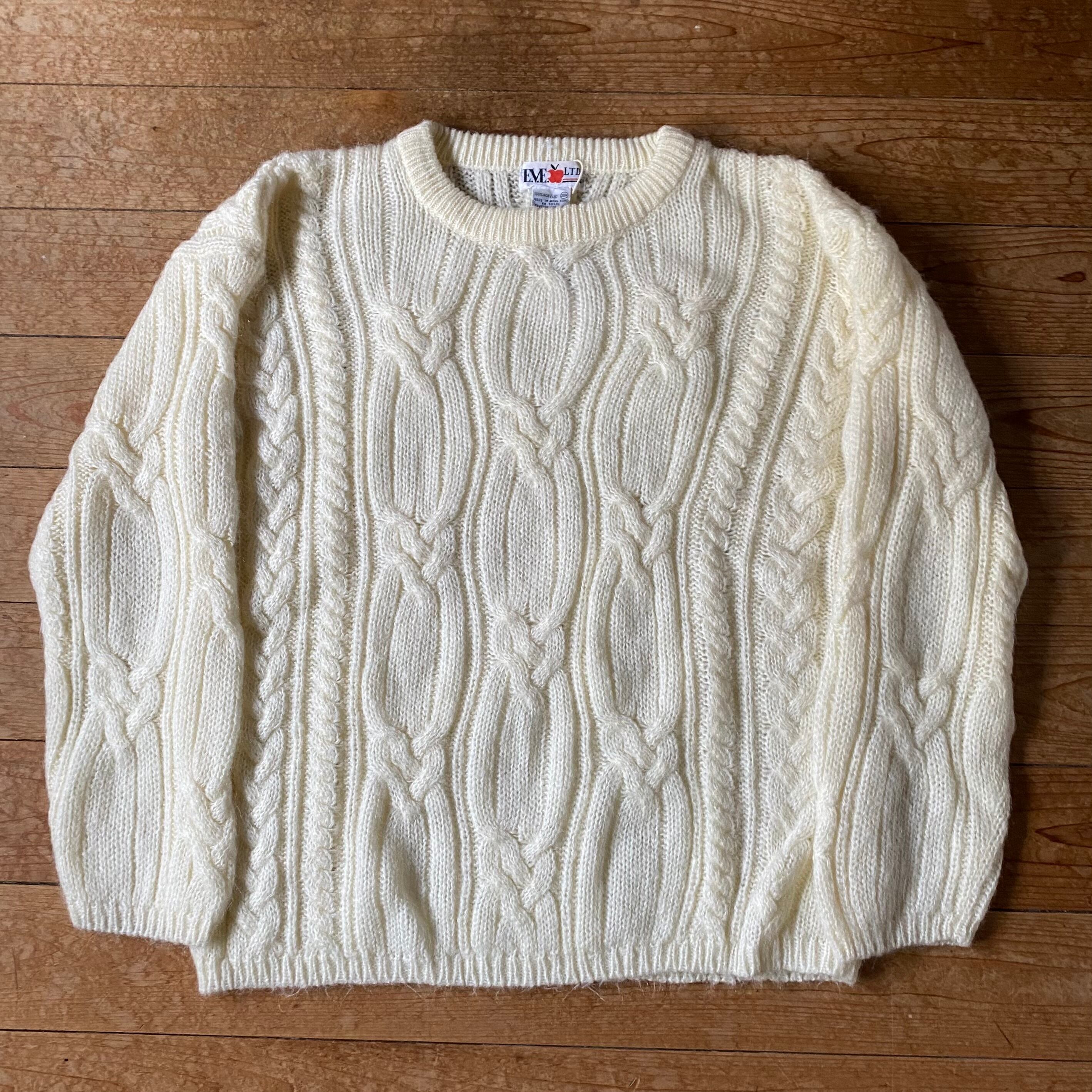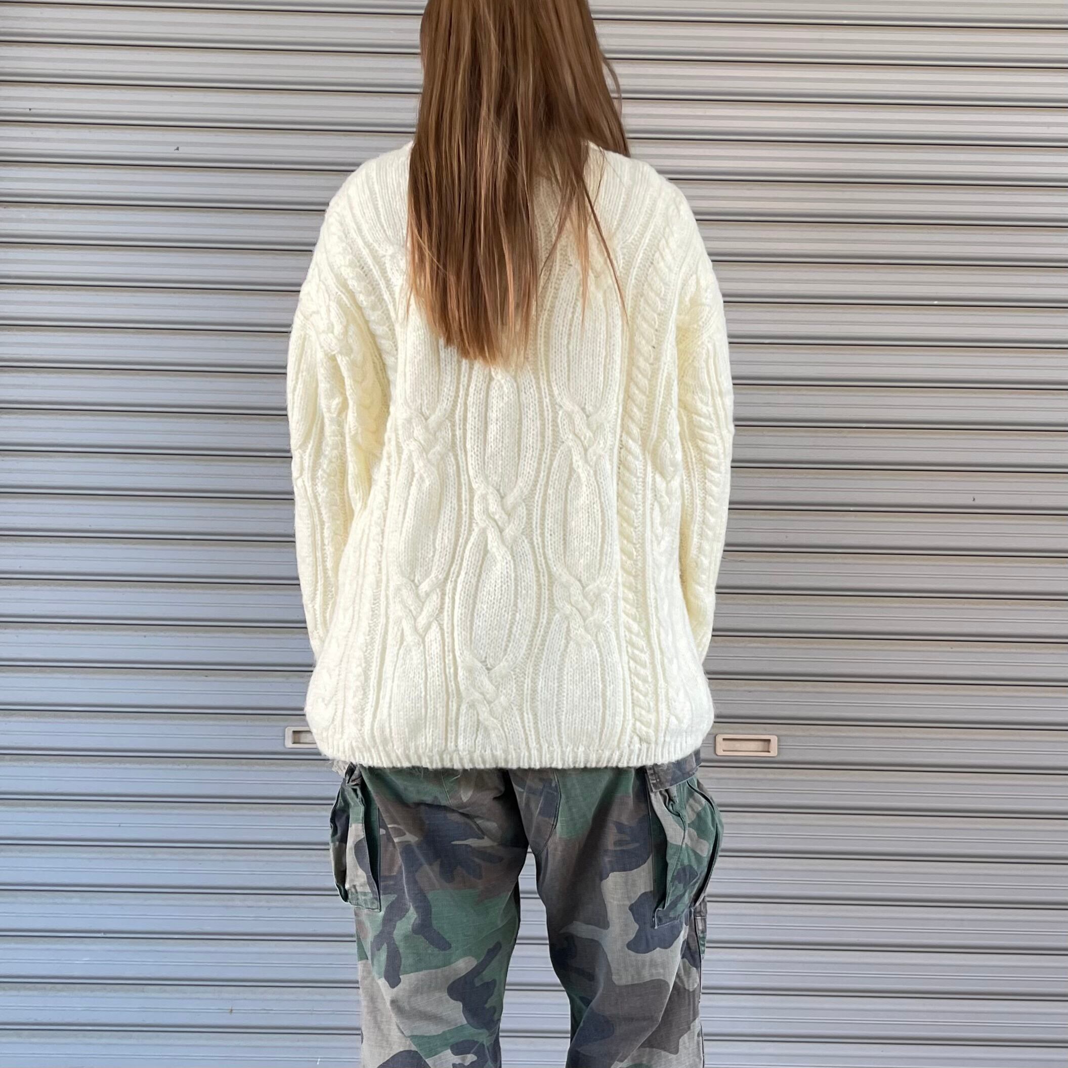 90's mohair like white cable Knit. 古着 モヘアライクニット セーター ホワイト 白 レディース