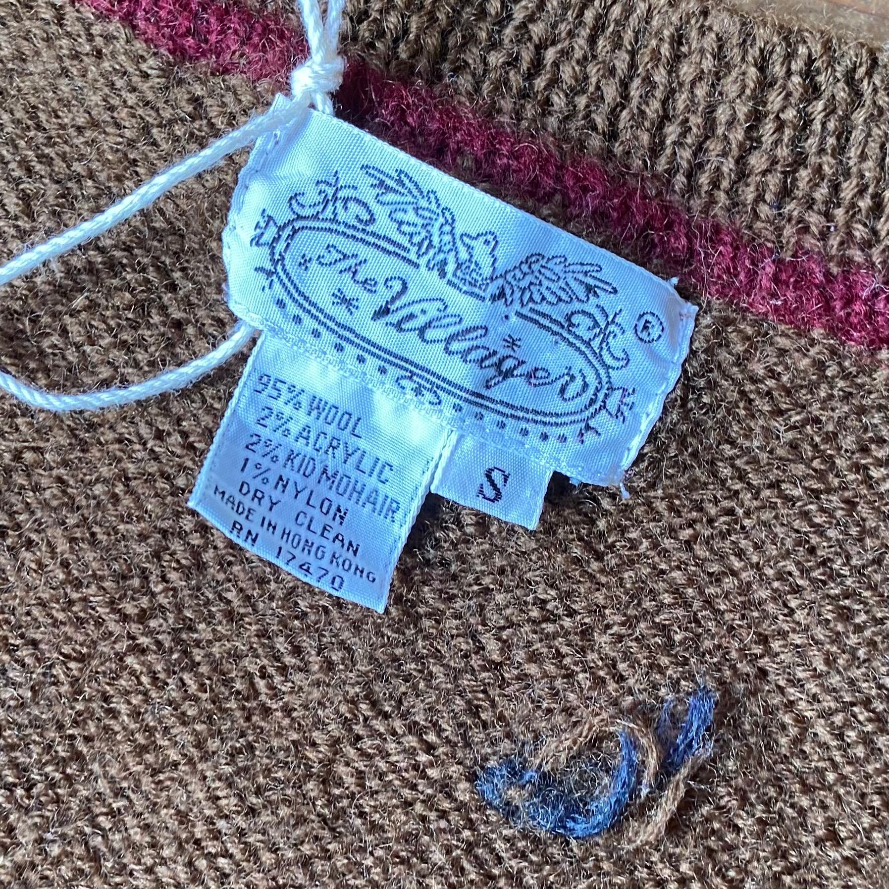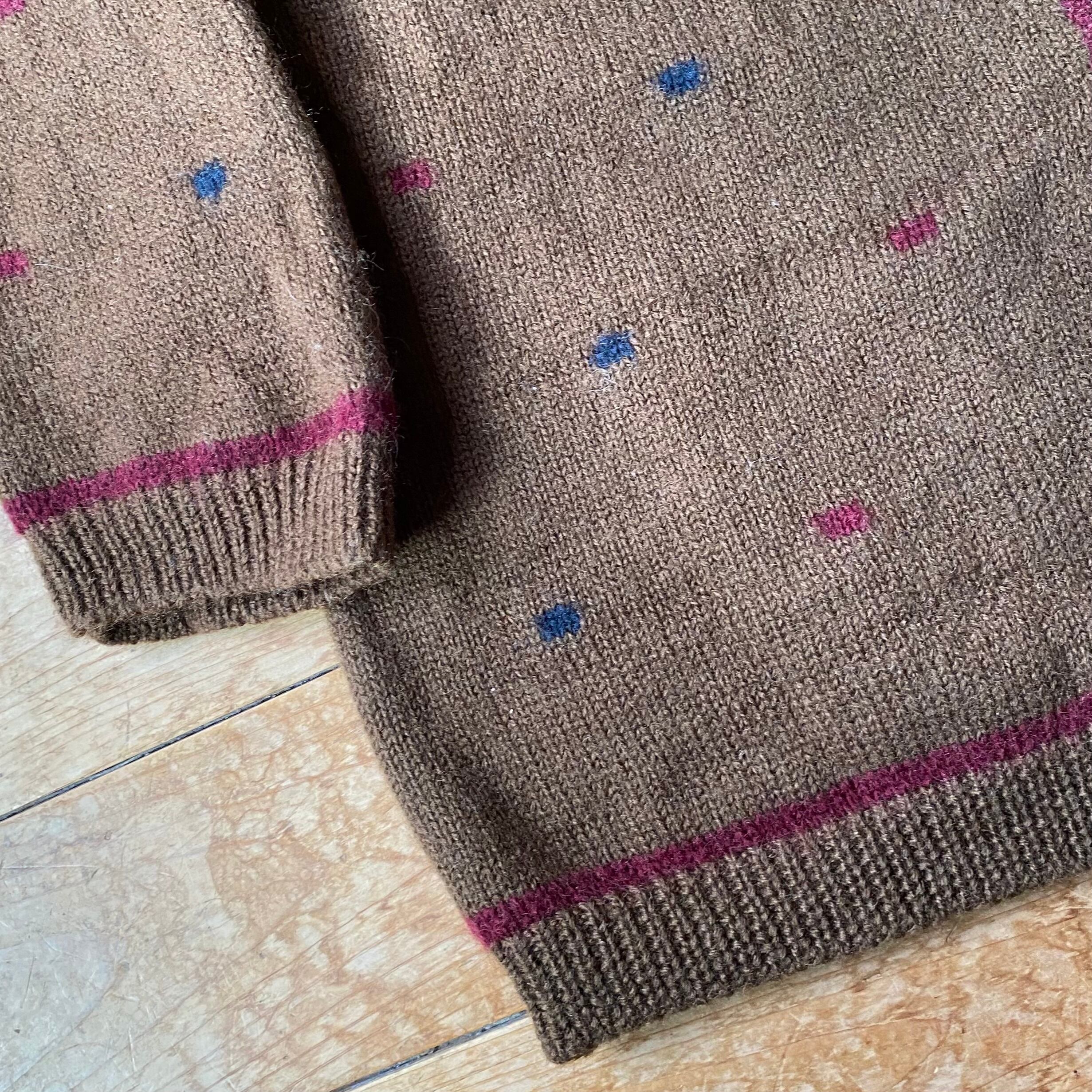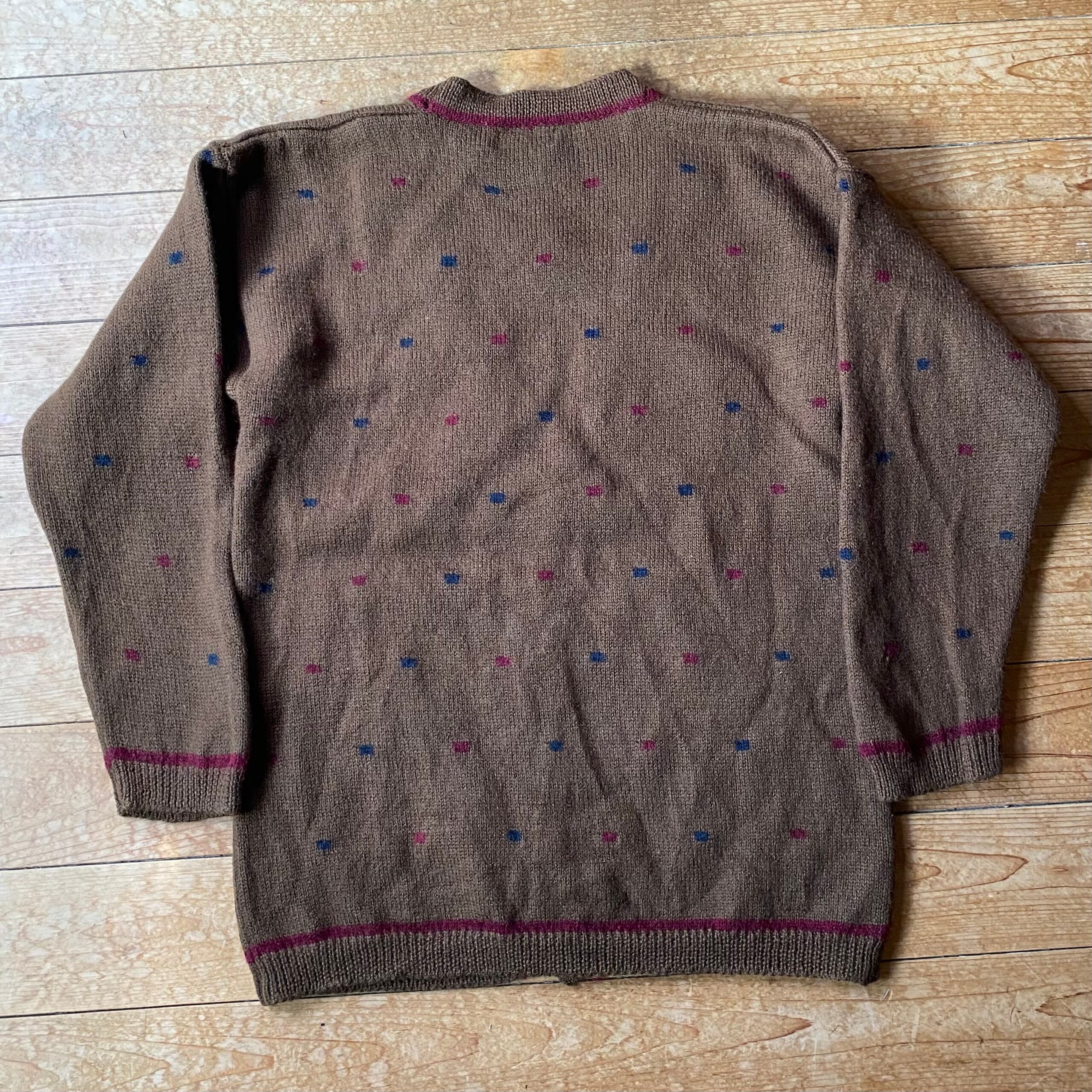 90's The Villager all over pattern knit cardigan. USA古着 総柄ニットカーディガン ウール ブラウン 茶色