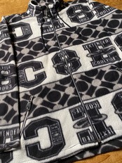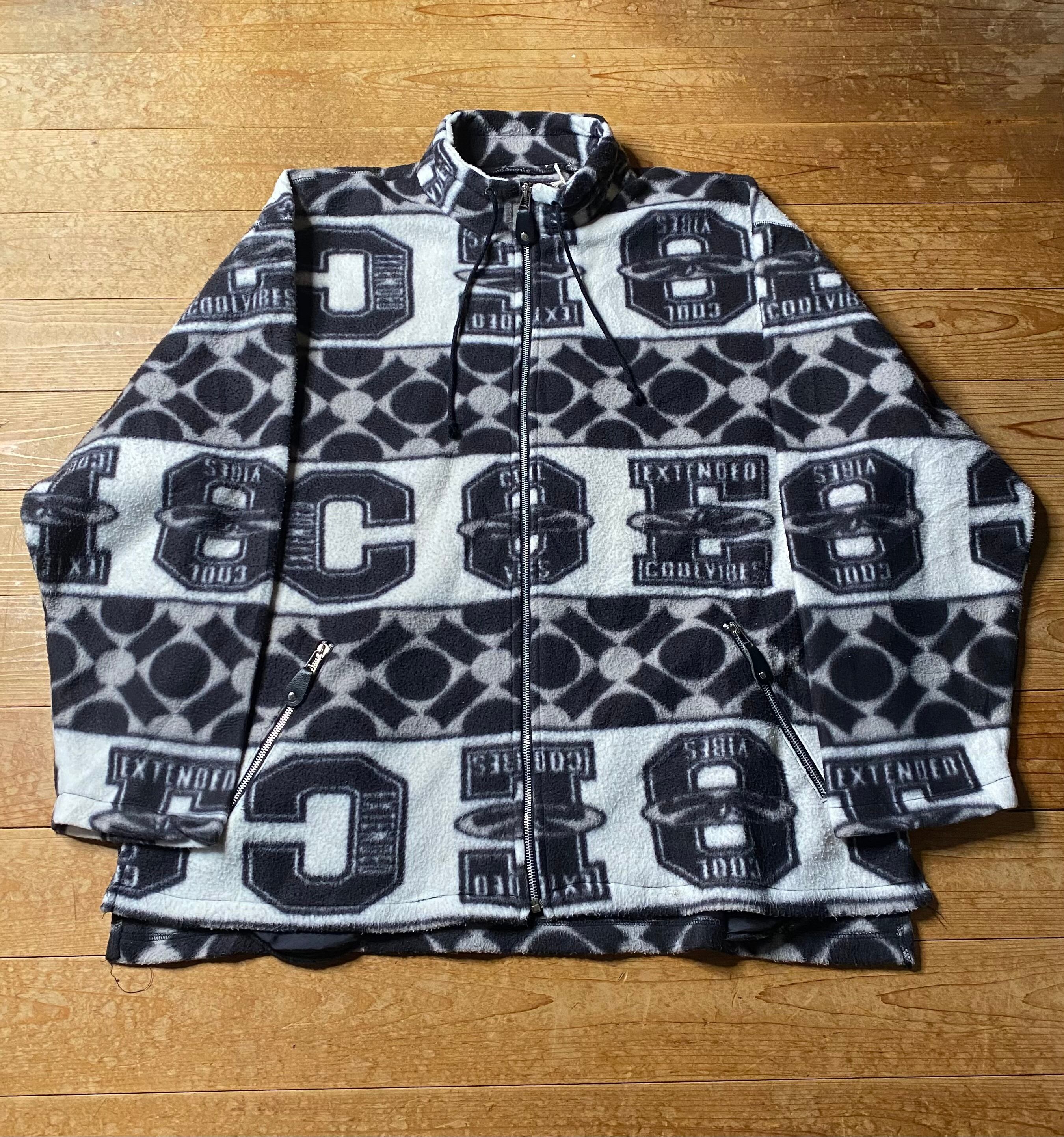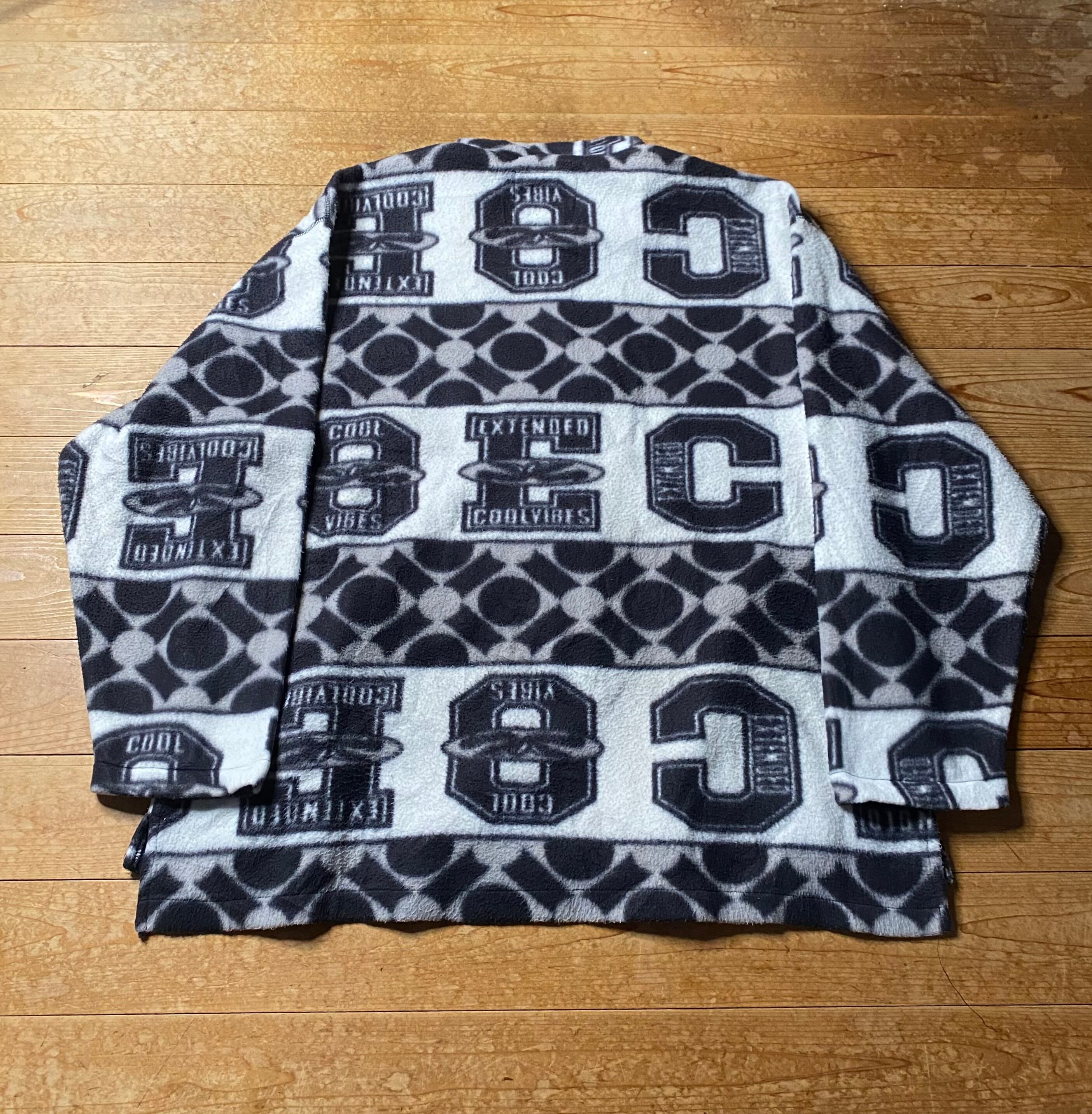 大柄のアルファベットが施されたストリートノリの総柄オールドフリース。