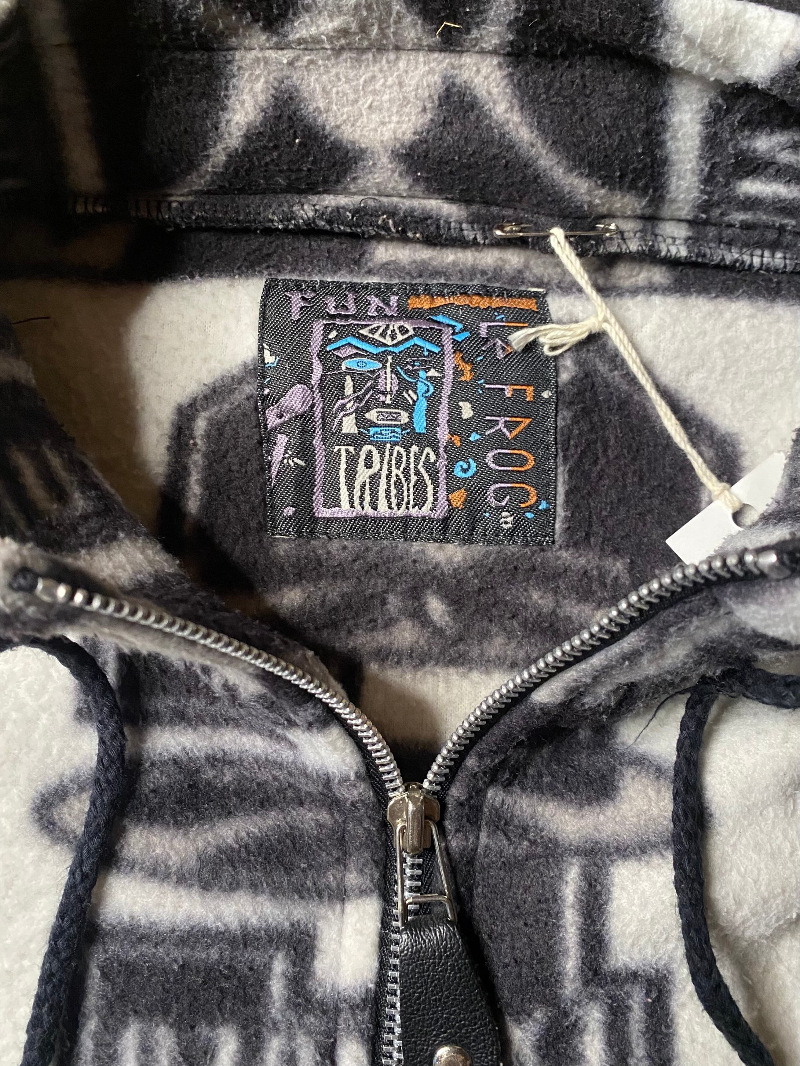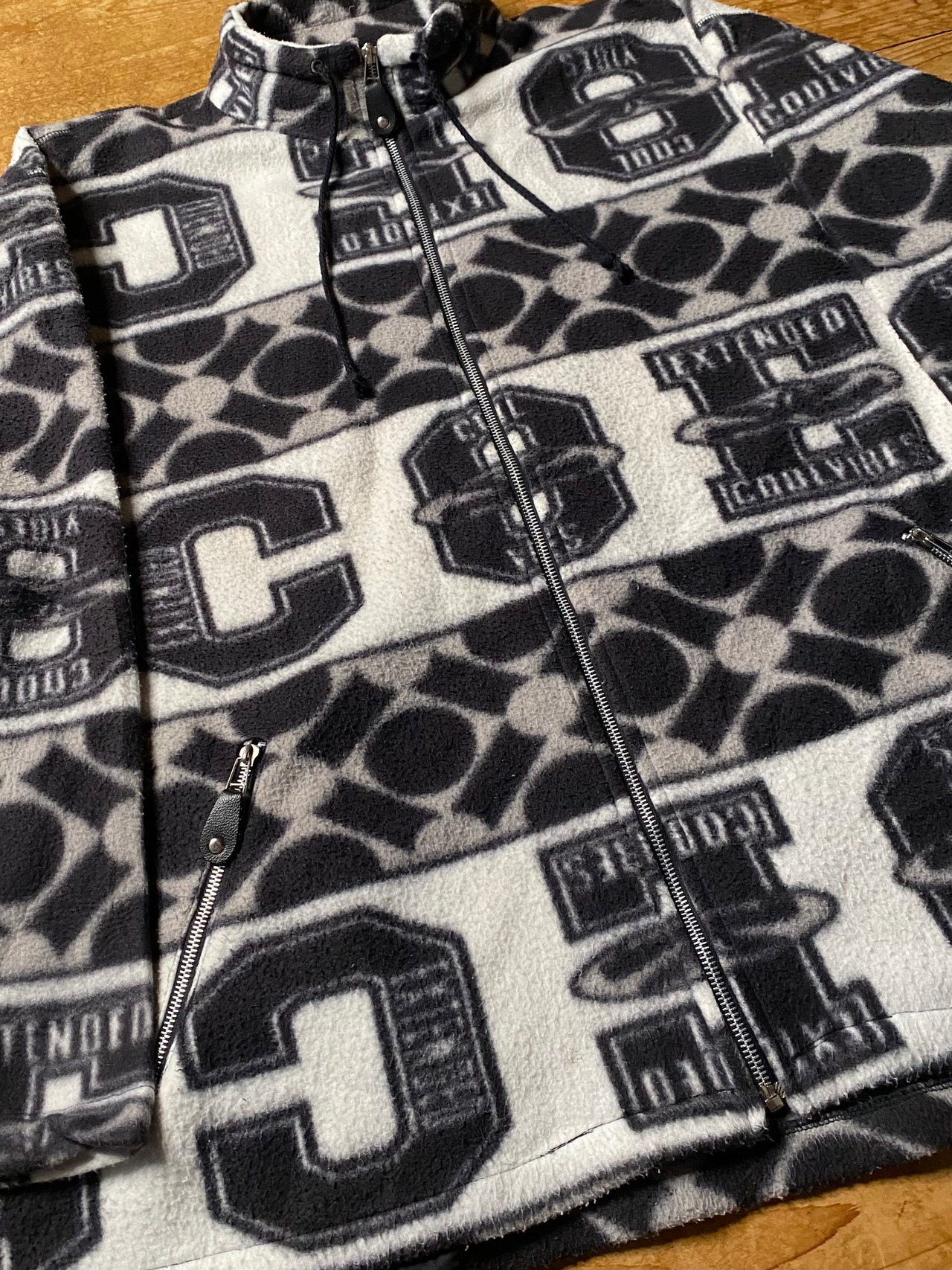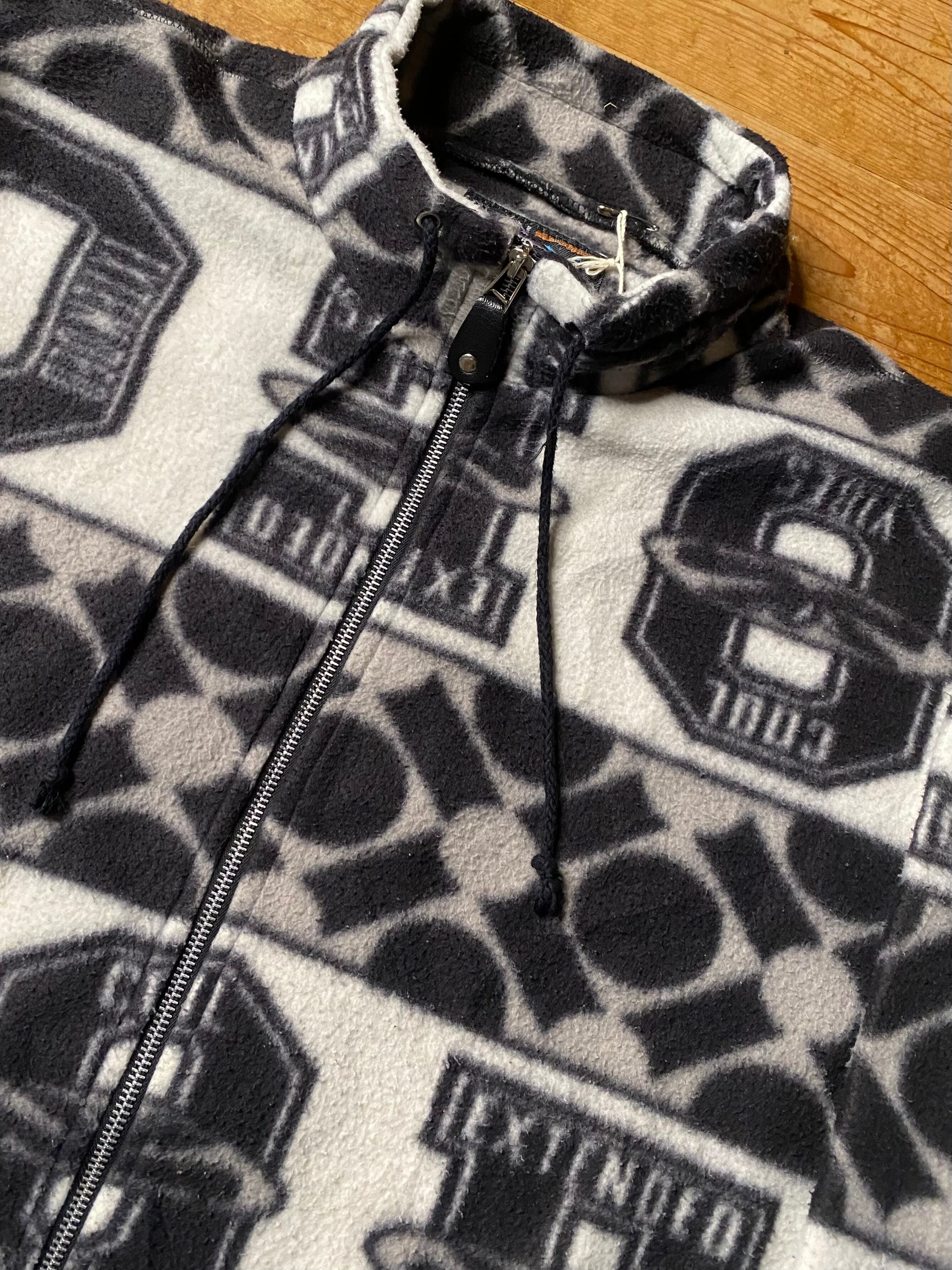 90's 総柄ジップアップフリース 古着 XL アルファベット