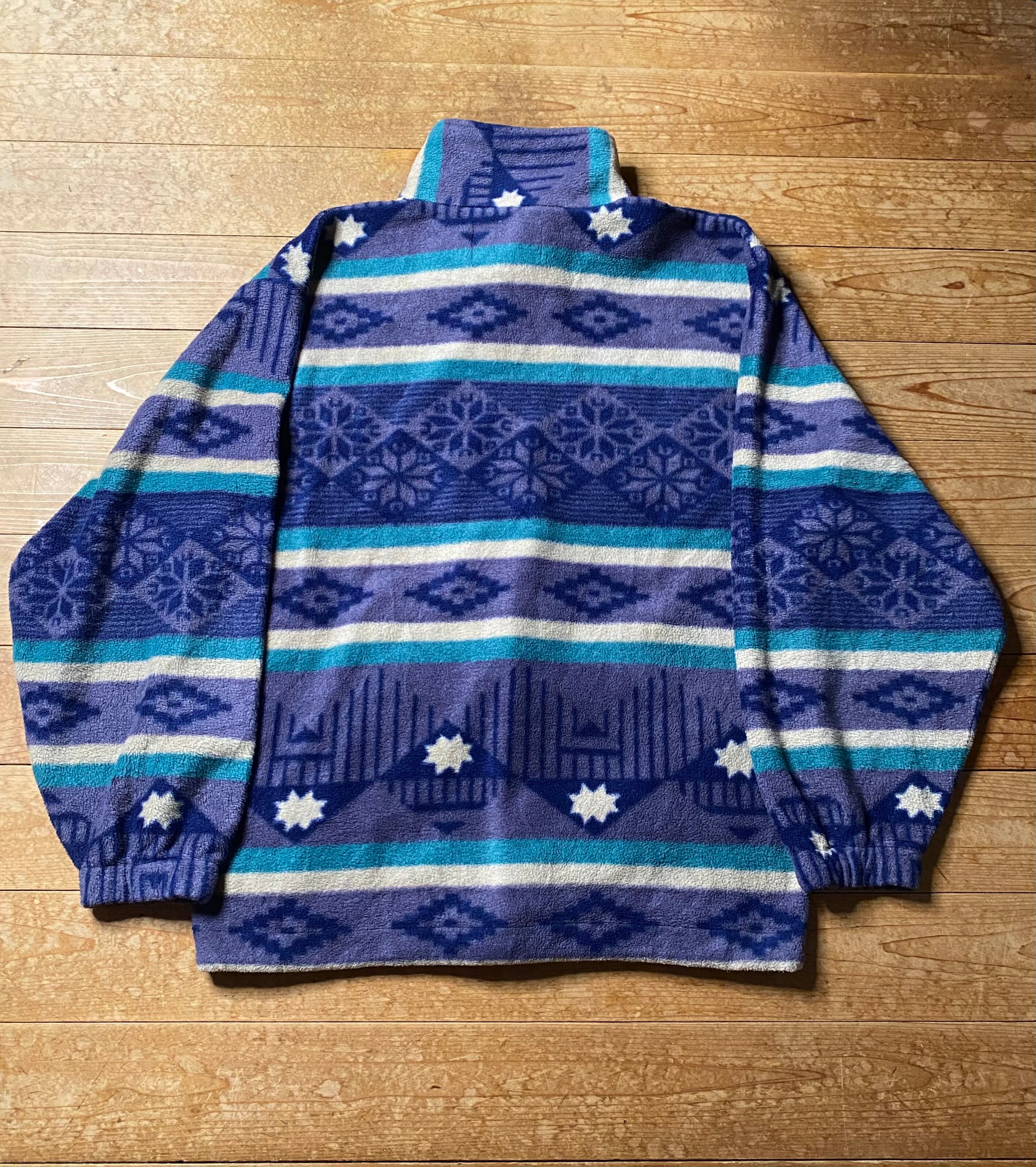 90's ノルディック総柄ジップアップフリース ユーロ 古着 雪柄 スノー