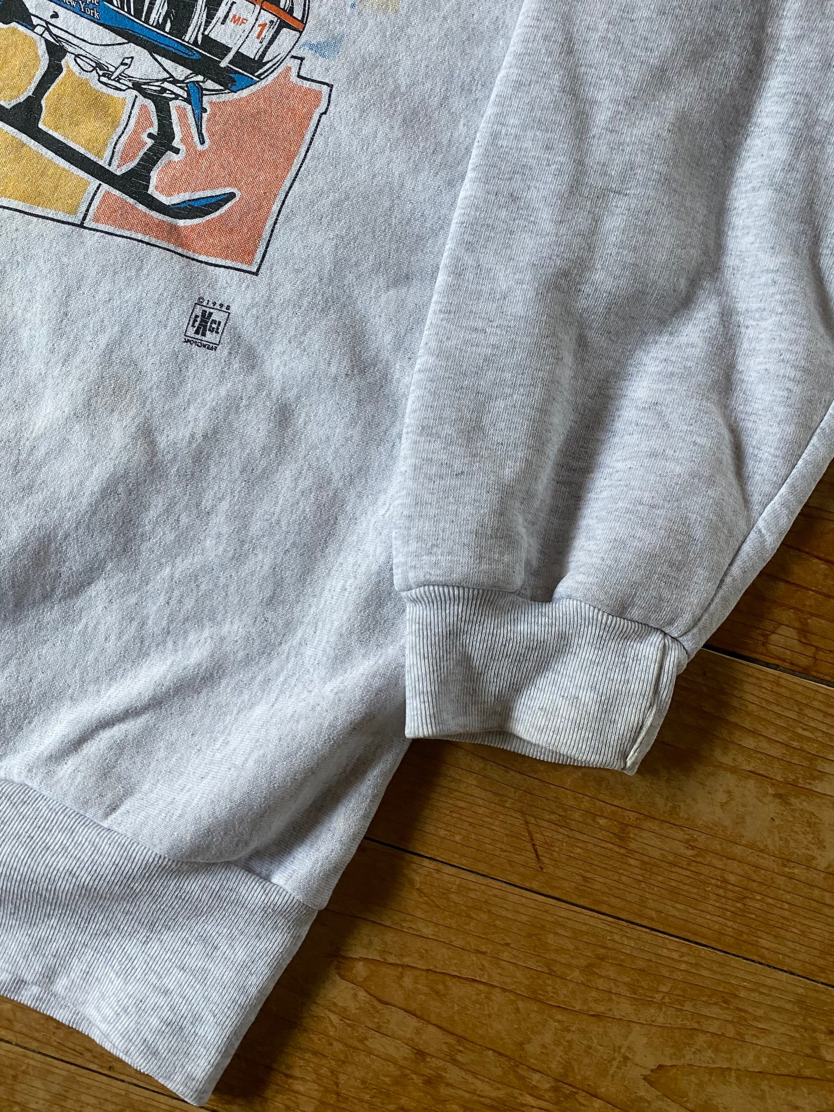 90's USA製 ヘリコプタープリントスウェット 古着 Mercy Flight アッシュ L トレーナー