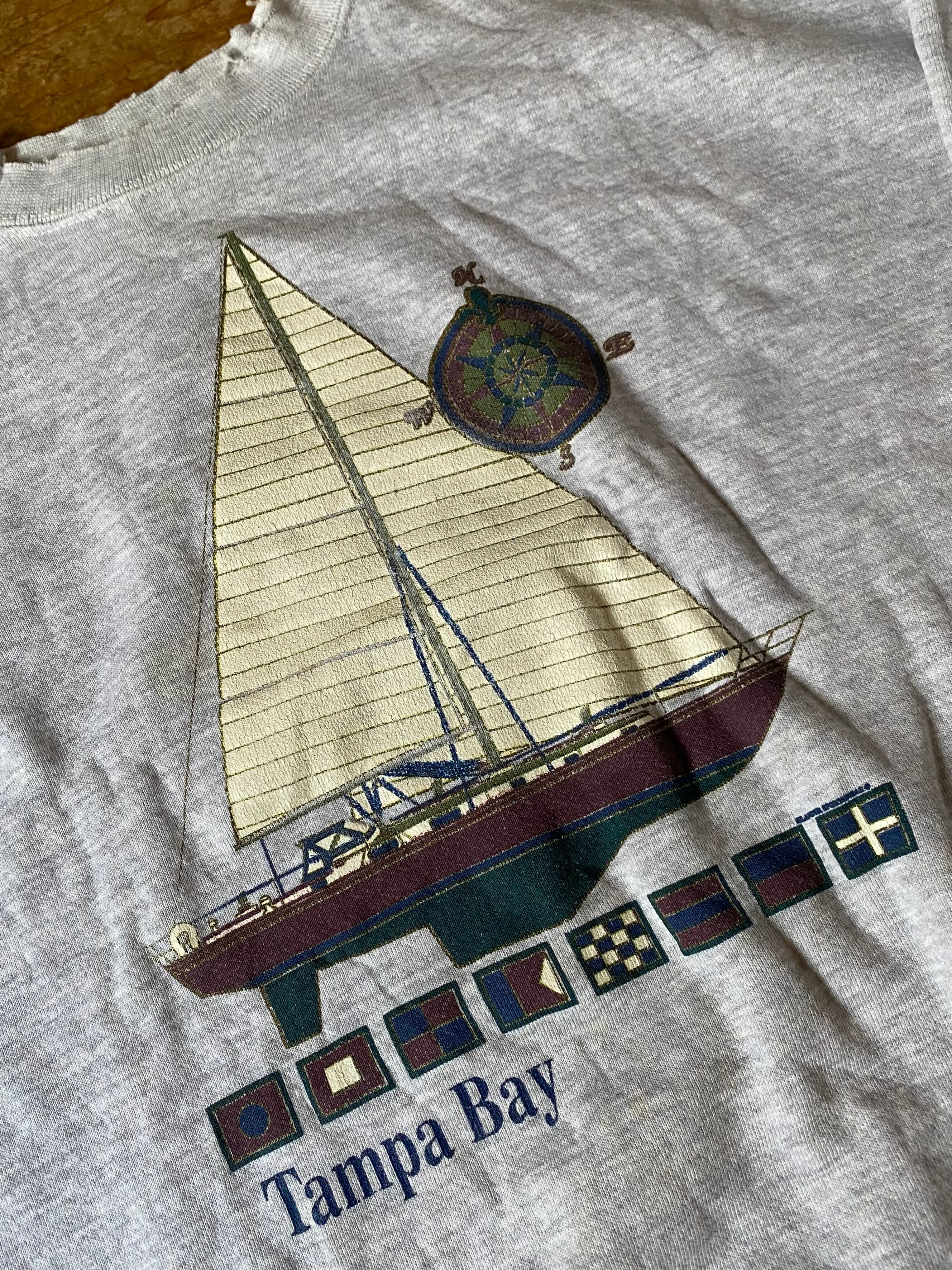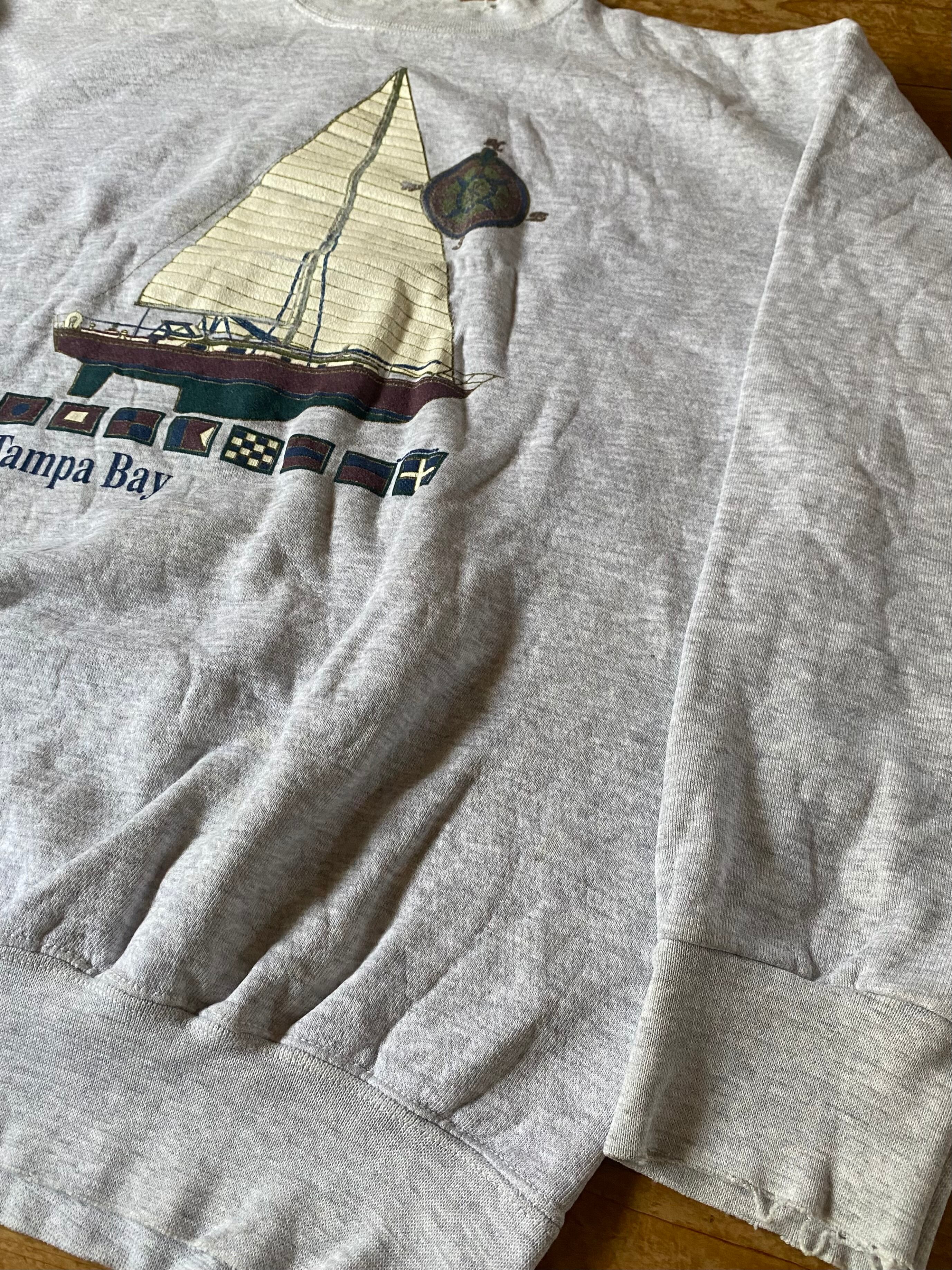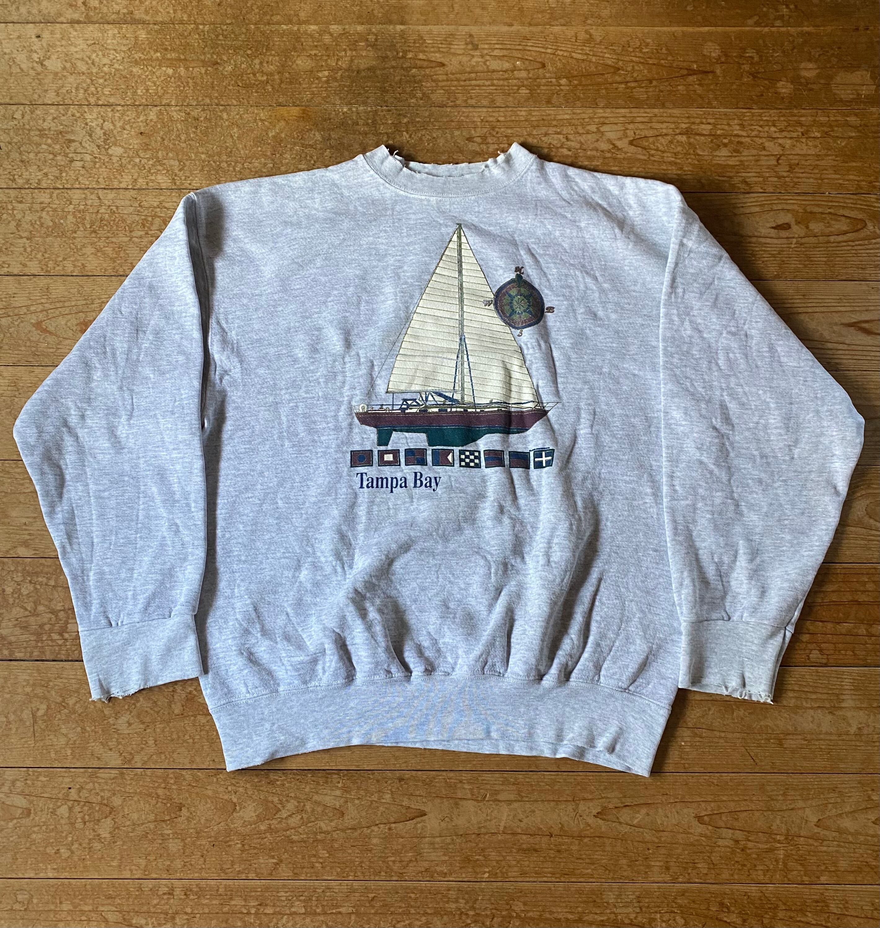 90's USA製 Tampa Bay ヨットセーリングデザインプリントスウェット 古着 船 グレー XL TULTEX トレーナー