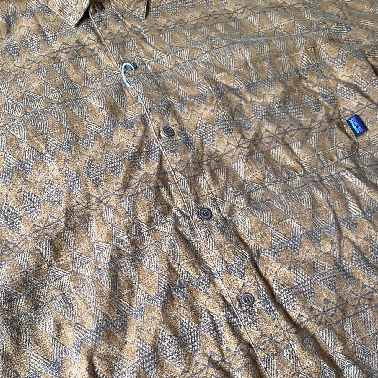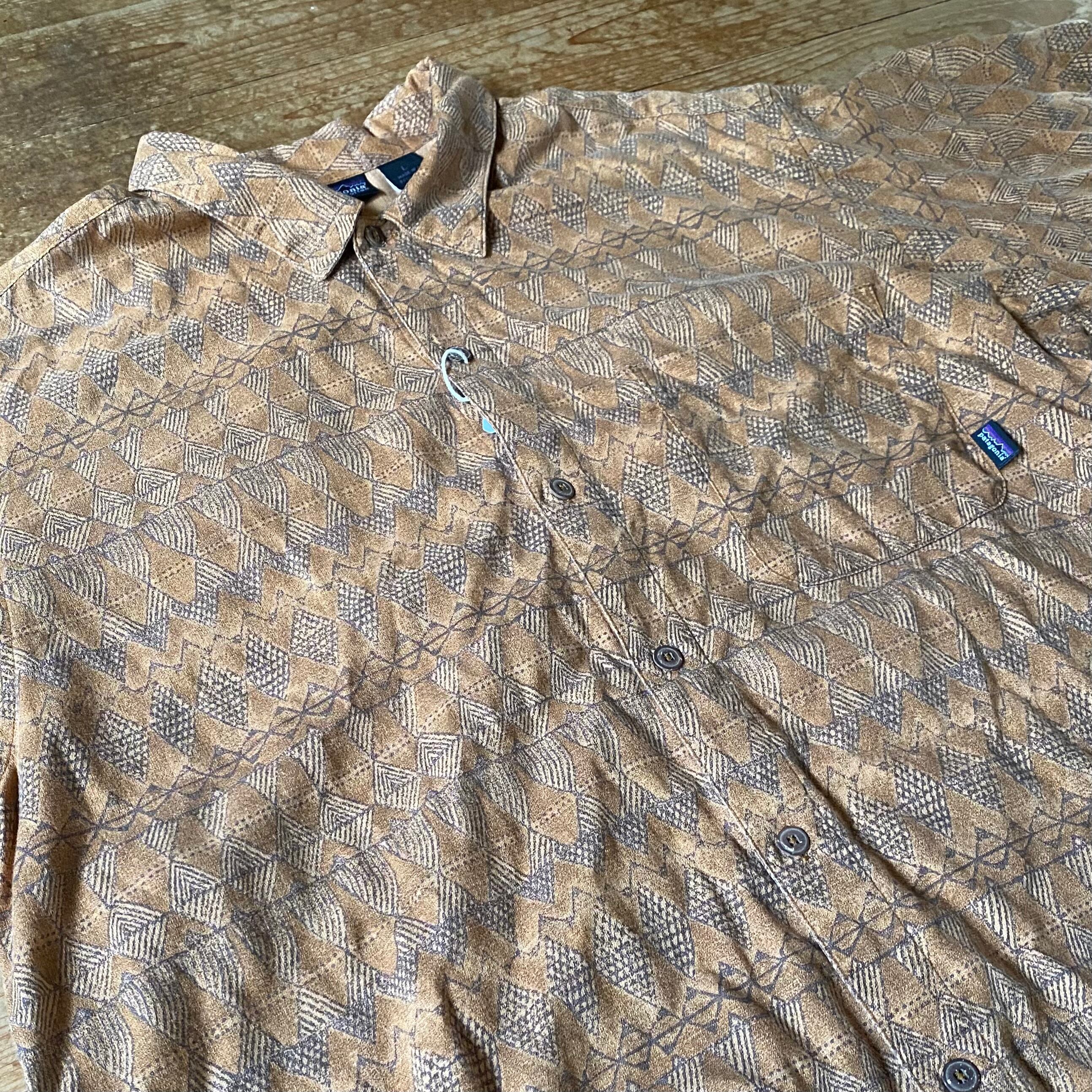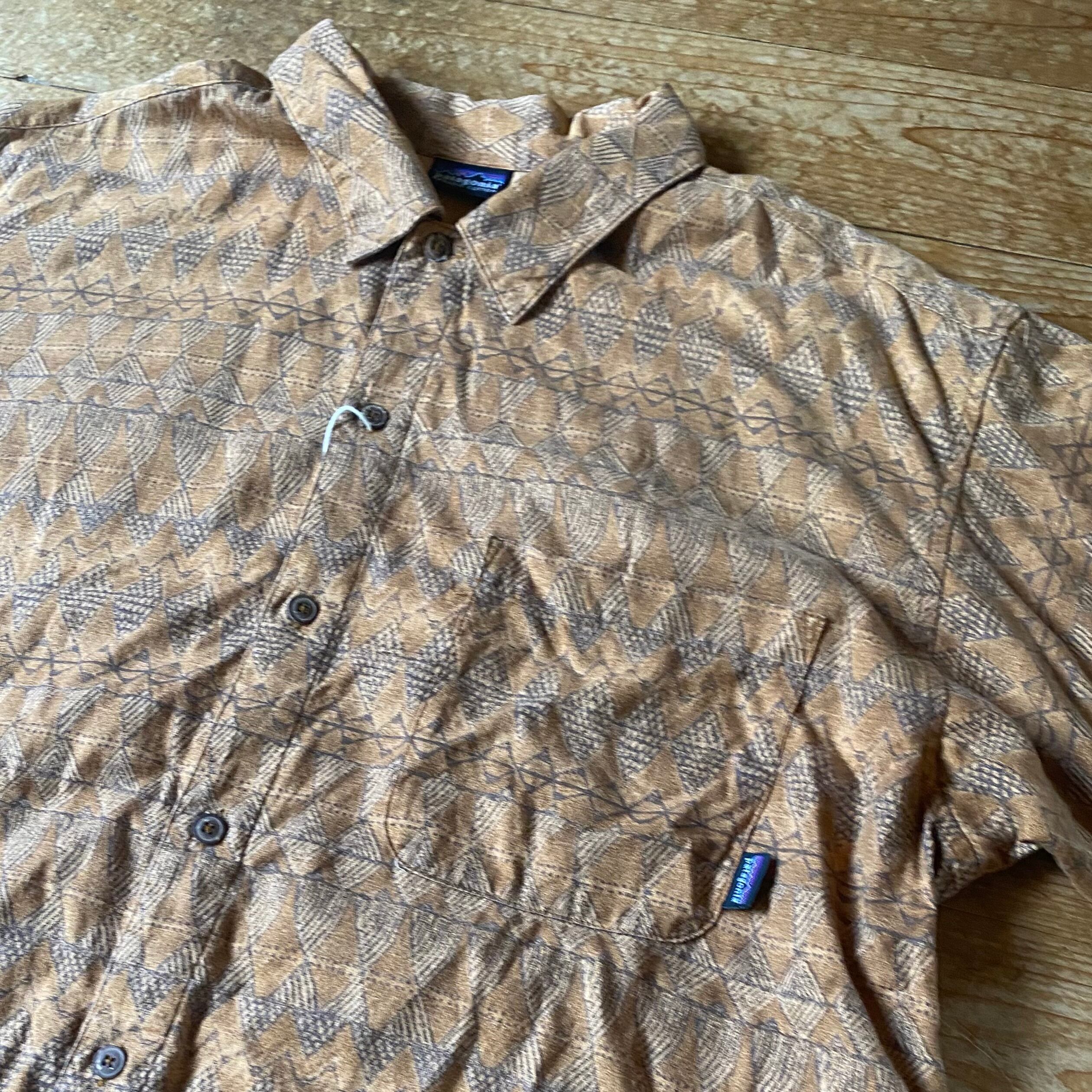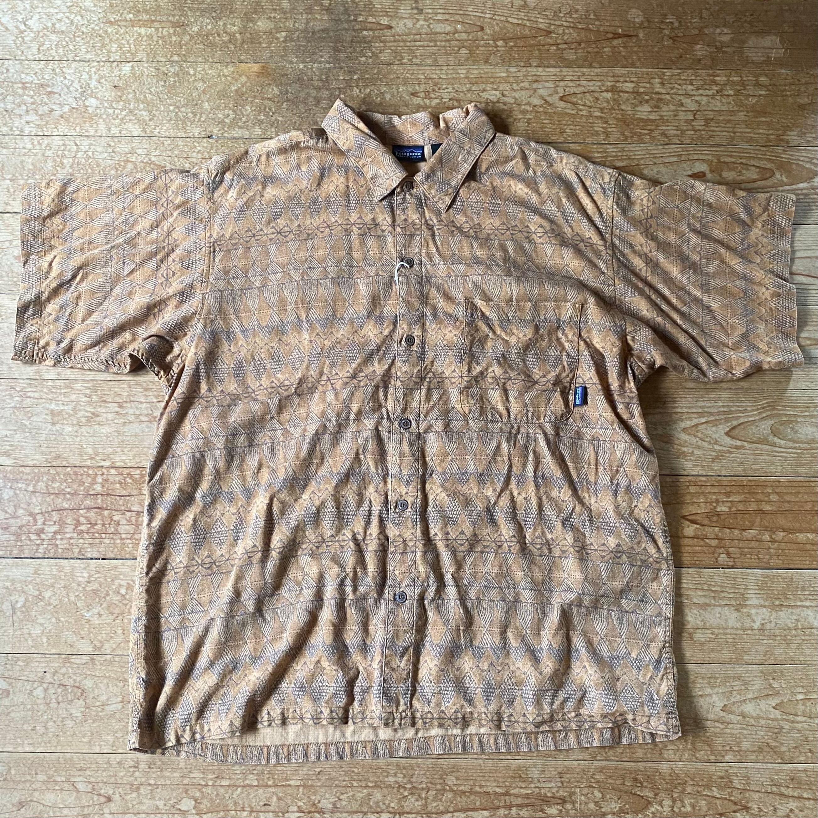 90’s Patagonia 総柄シャツ ブリック 98S オーガニックコットン 半袖 古着 パタゴニア