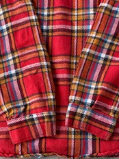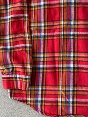 レッドカラーをメインにライトブルーの差し色が効いたチェック柄。