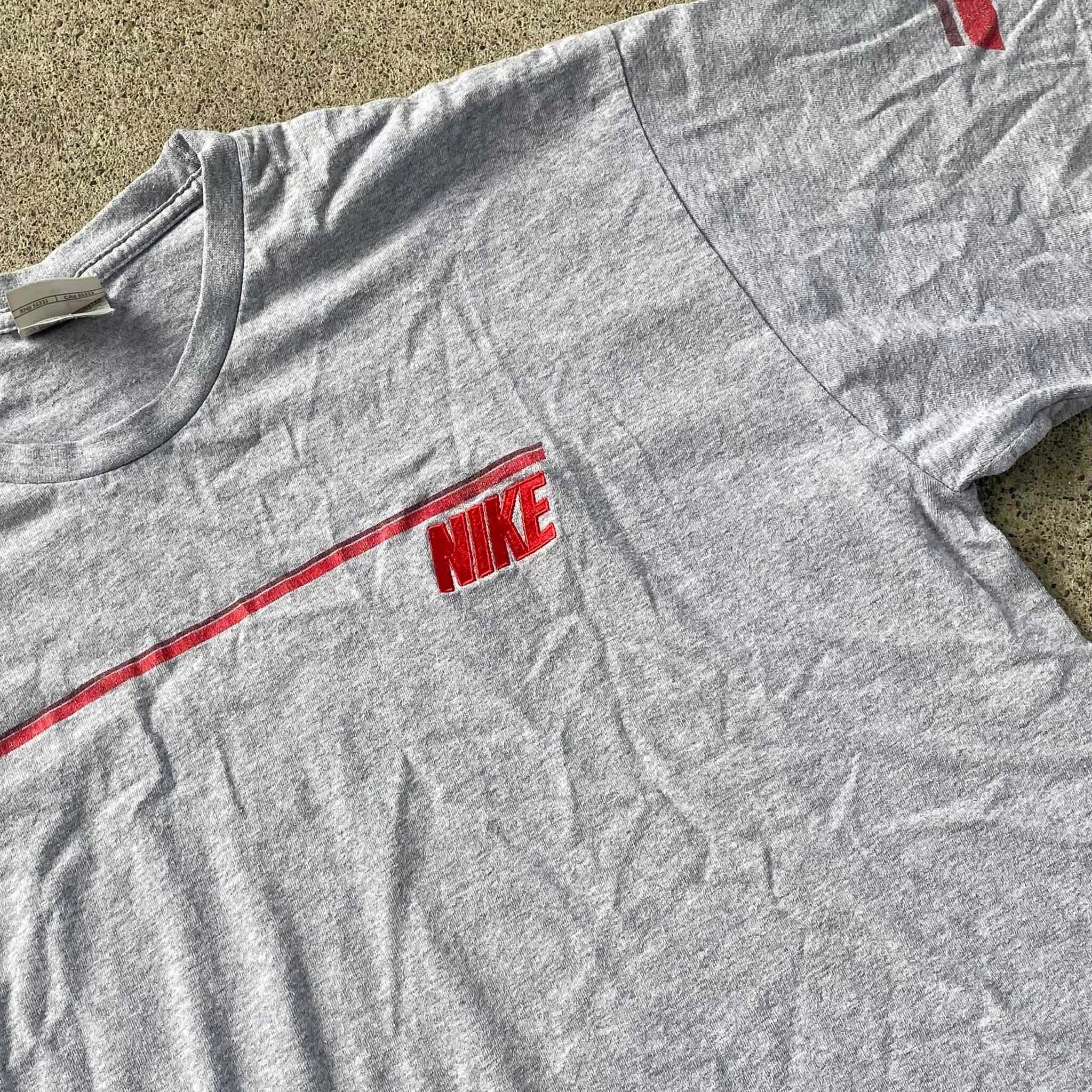 【90~00's】NIKE プリントTシャツ ナイキ グレー USA古着 刺繍ロゴ メンズXL
